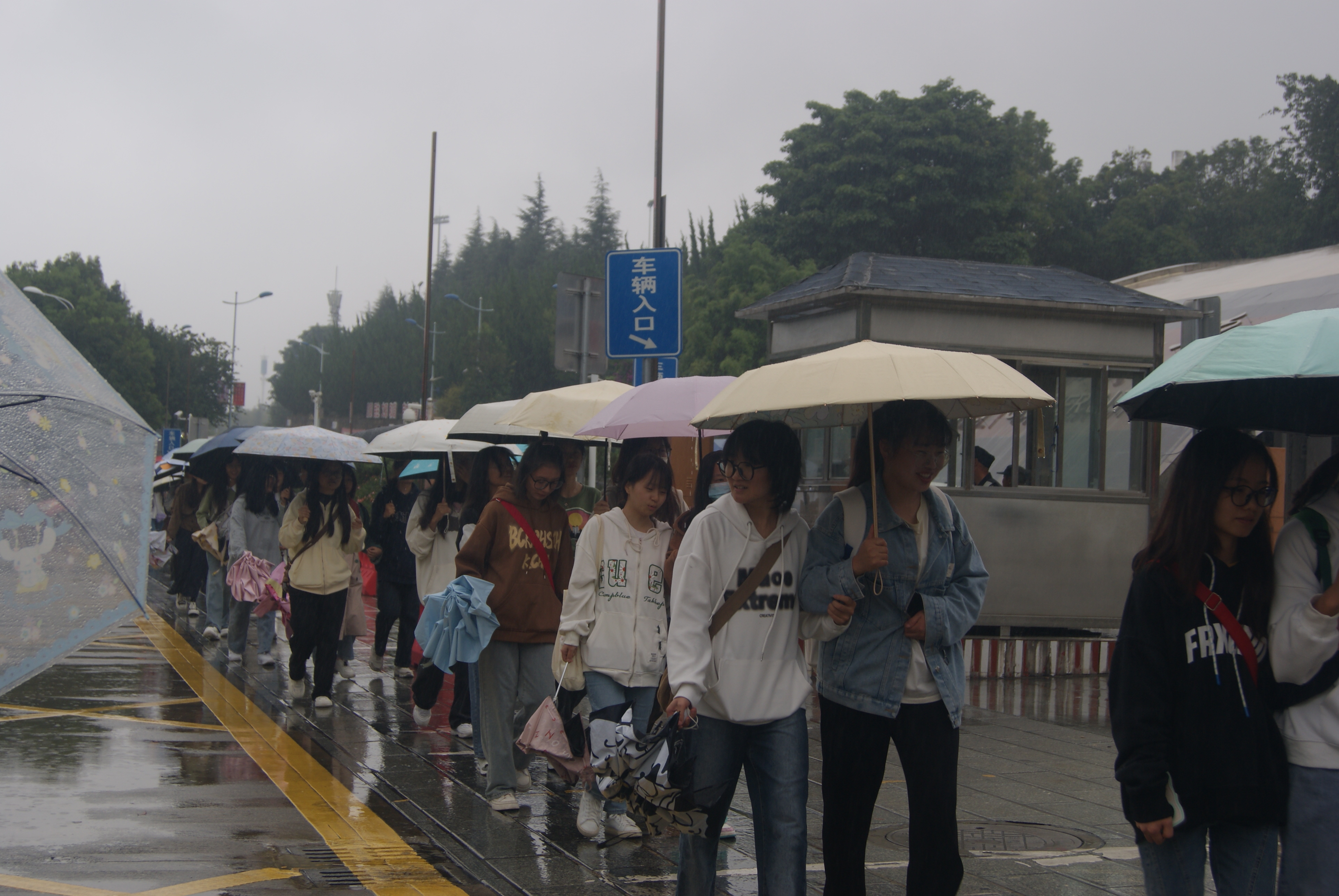細雨蒙蒙中,同學們兩兩一組,撐起一把小雨傘,排著整齊的隊伍,懷著無比激動的心情,踏上了創新創業實踐研學之路。長長的隊伍一眼望不到盡頭,同學們在涼風和雨水中艱難行進。老師告訴同學們,創業之路就是風雨之路,充滿了曲折與坎坷,唯有堅持下去,成功方能在前方出現。