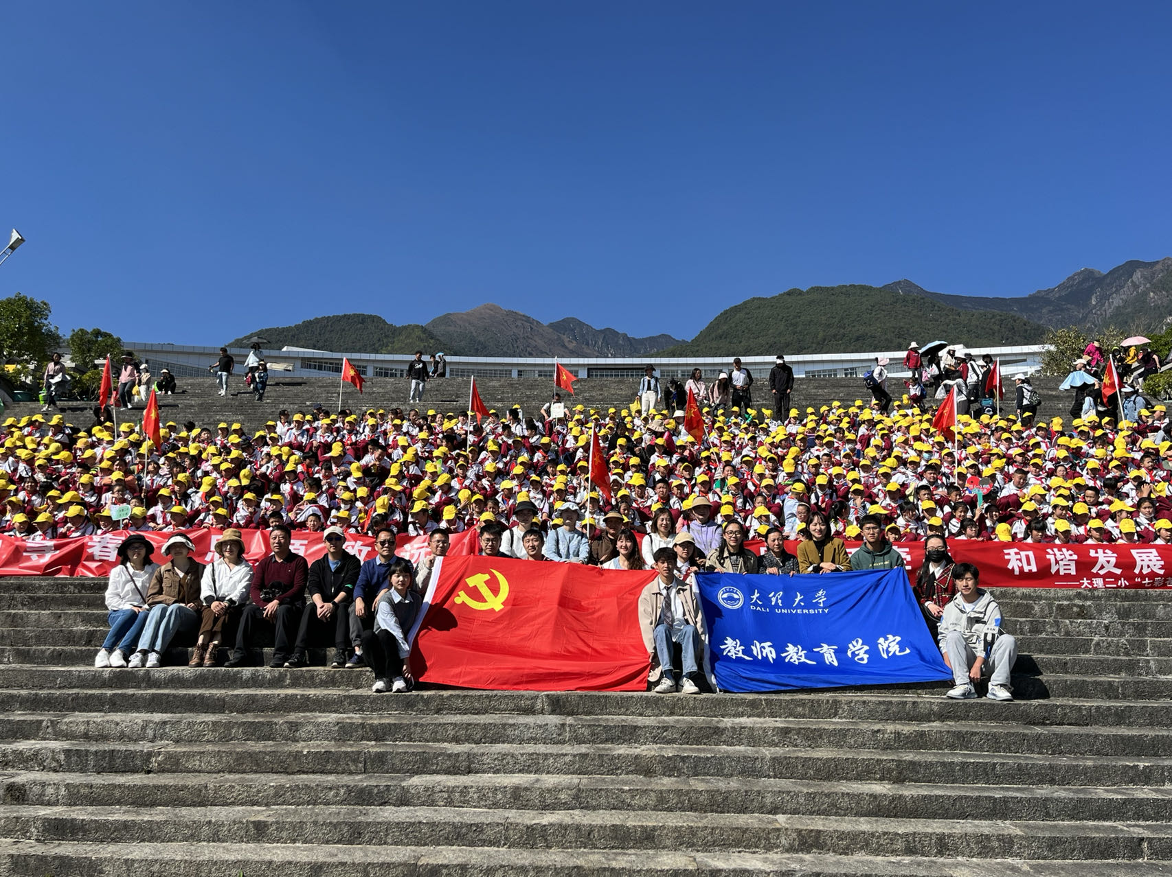 為深入推進大中小學思政課一體化建設工作,落實立德樹人根本任務,2023年4月7日,教師教育學院黨委聯合大理市大理第二完全小學開展大理州鑄牢中華民族共同體意識主題教育館參觀研學思政課。我院20余名師生黨員及大理第二完全小學800余名師生參加此次活動。