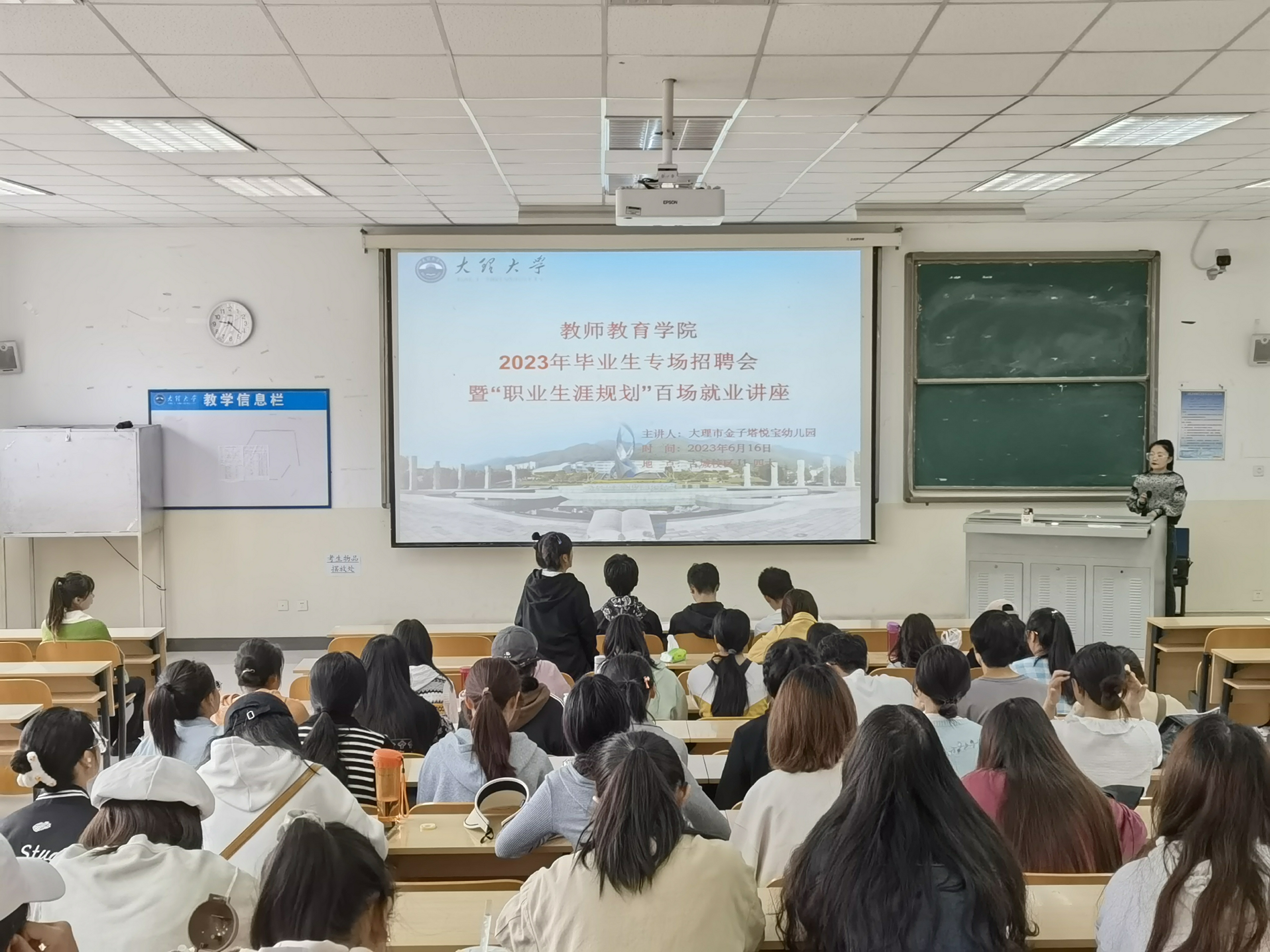 專項行動后,由于大理市金子塔悅寶幼兒園為學院學前教育專業(yè)畢業(yè)生和準畢業(yè)生提供了3個就業(yè)崗位和8個實習崗位,學院還邀請大理市金子塔悅寶幼兒園為學院2023屆畢業(yè)生及2024屆準畢業(yè)生開展了專場招聘宣講會和以“職業(yè)生涯規(guī)劃”為主題的就業(yè)創(chuàng)業(yè)講座,2023屆畢業(yè)生及2024屆準畢業(yè)生與用人單位進行了積極互動的交流。