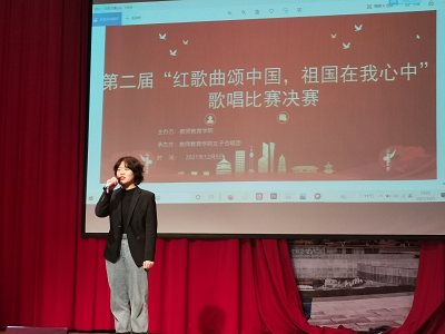 12月5日下午,教師教育學(xué)院在學(xué)生活動(dòng)中心多功能廳舉辦第二屆“紅歌曲頌中國,祖國在我心中”歌唱比賽。到場評委有徐輝斌老師、書法協(xié)會(huì)主席楊天怒老師、教師基本功教研室主任饒清翠老師。