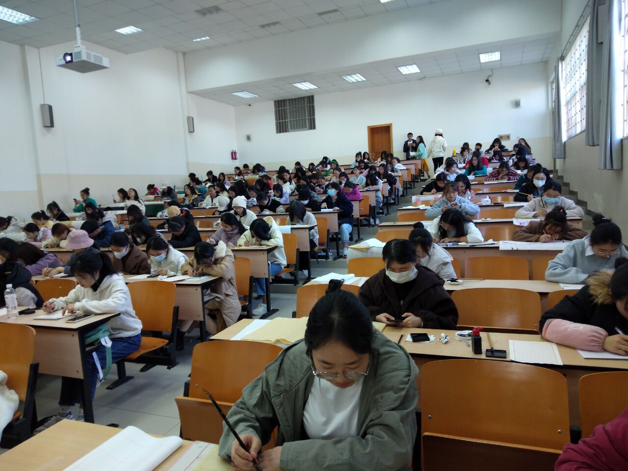 根據(jù)教育部《中小學(xué)書法教育指導(dǎo)綱要》、《教育部、國家語委關(guān)于進(jìn)一步加強(qiáng)學(xué)校語言文字工作的意見》等意見,參照“云南省書法篆刻考級(jí)中心”制定的有關(guān)書法考級(jí)要求及標(biāo)準(zhǔn),教師教育學(xué)院于2021年12月19日下午在古城校區(qū)三大和四大教室舉行了2021年第一次書法等級(jí)測試。
