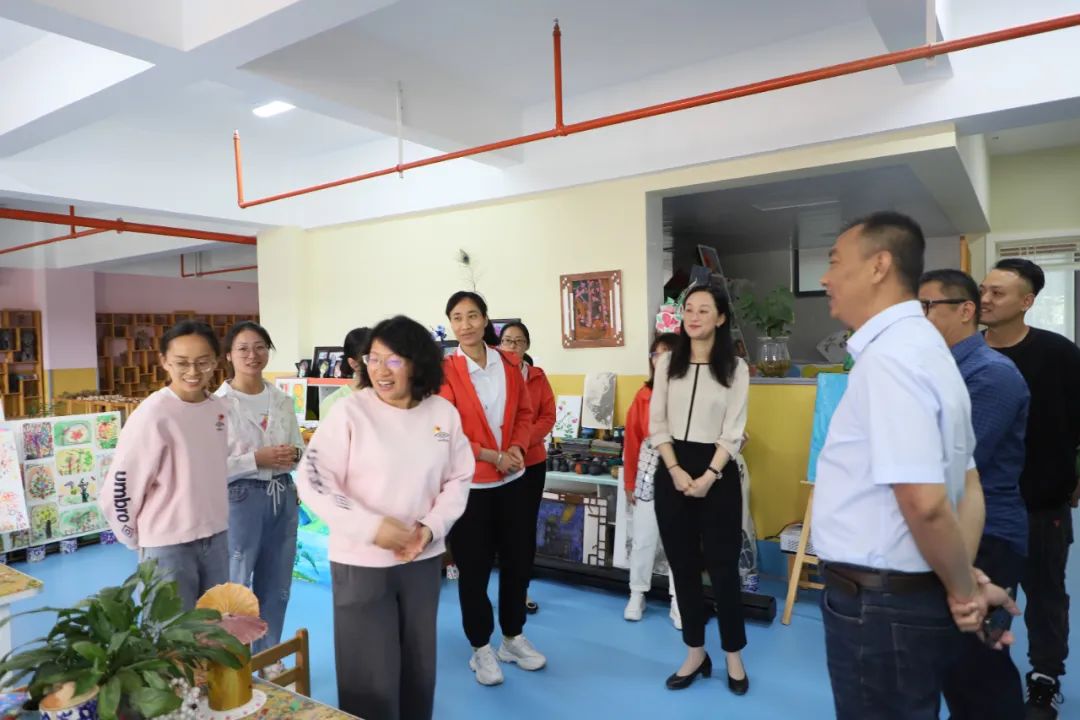 教師教育學院一行在幼兒園班子成員的陪同下,實地考察了省級創意美術室、泥塑工坊、扎染傳習館等特色功能室及幼兒園環境。考察過程中,楊民書記指出大理州幼兒園完善的基礎設施,優美的育人環境,特色鮮明的功能室對幼兒的成長與發展發揮了重要的作用。教師教育學院一行還看望了在州幼兒園就職的大理大學優秀校友及在園實習的研究生同學,深入了解學前教育專業人才在園的職業發展和實習情況。