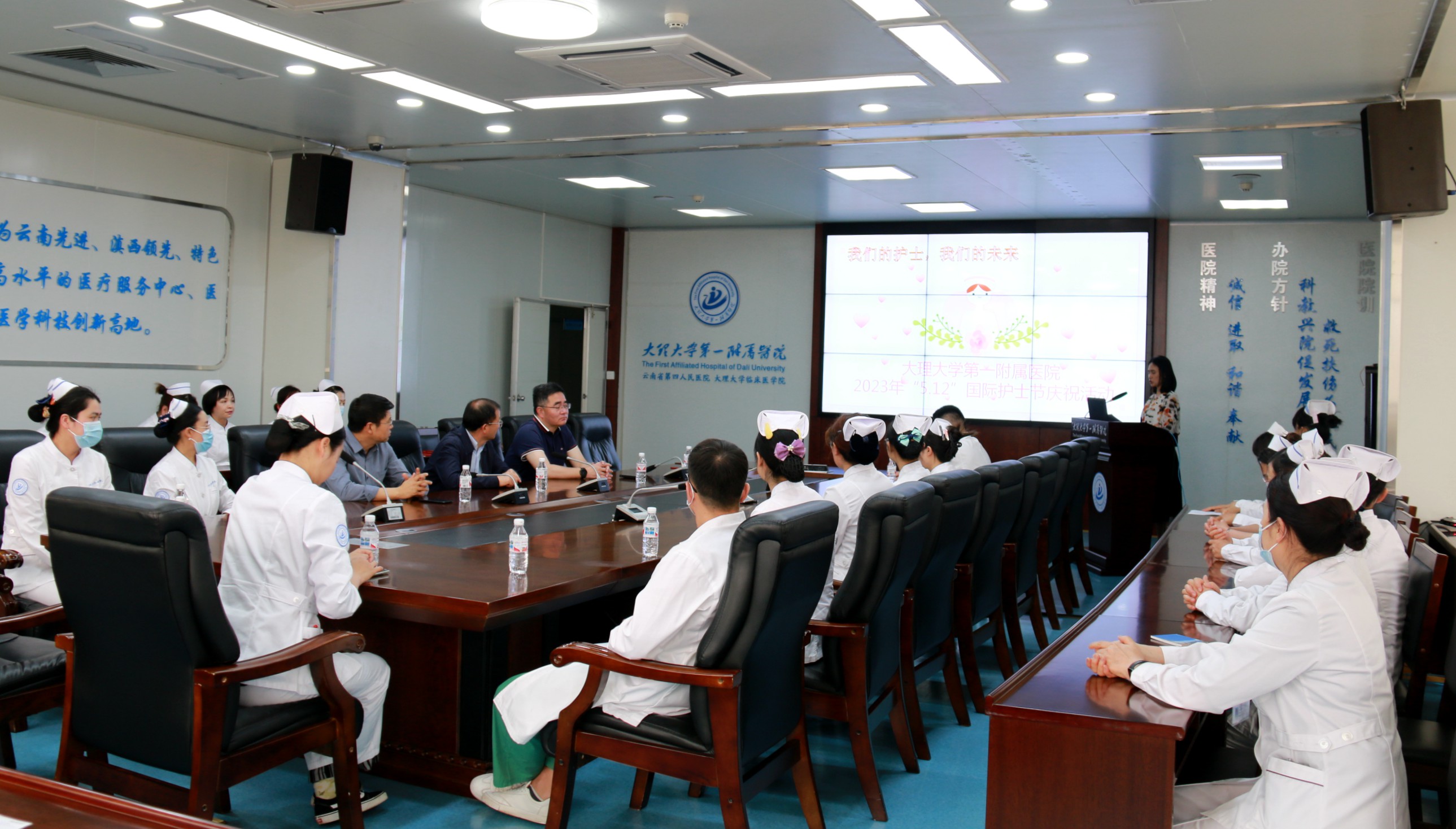 5月11日,大理大學(xué)第一附屬醫(yī)院舉行以“我們的護(hù)士,我們的未來(lái)”為主題的“5.12”國(guó)際護(hù)士節(jié)慶祝活動(dòng),熱烈慶祝第112個(gè)“5.12”國(guó)際護(hù)士節(jié),進(jìn)一步提高護(hù)理團(tuán)隊(duì)的凝聚力和向心力,激發(fā)廣大護(hù)理工作者工作熱情,促進(jìn)護(hù)理事業(yè)向前發(fā)展。醫(yī)院院長(zhǎng)吳新華、黨委副書(shū)記胡林、紀(jì)委書(shū)記張黎明、副院長(zhǎng)張?jiān)萍t,以及全體護(hù)士長(zhǎng)、助理護(hù)士長(zhǎng)、護(hù)理技能比賽獲獎(jiǎng)人員參加了慶祝表彰儀式。