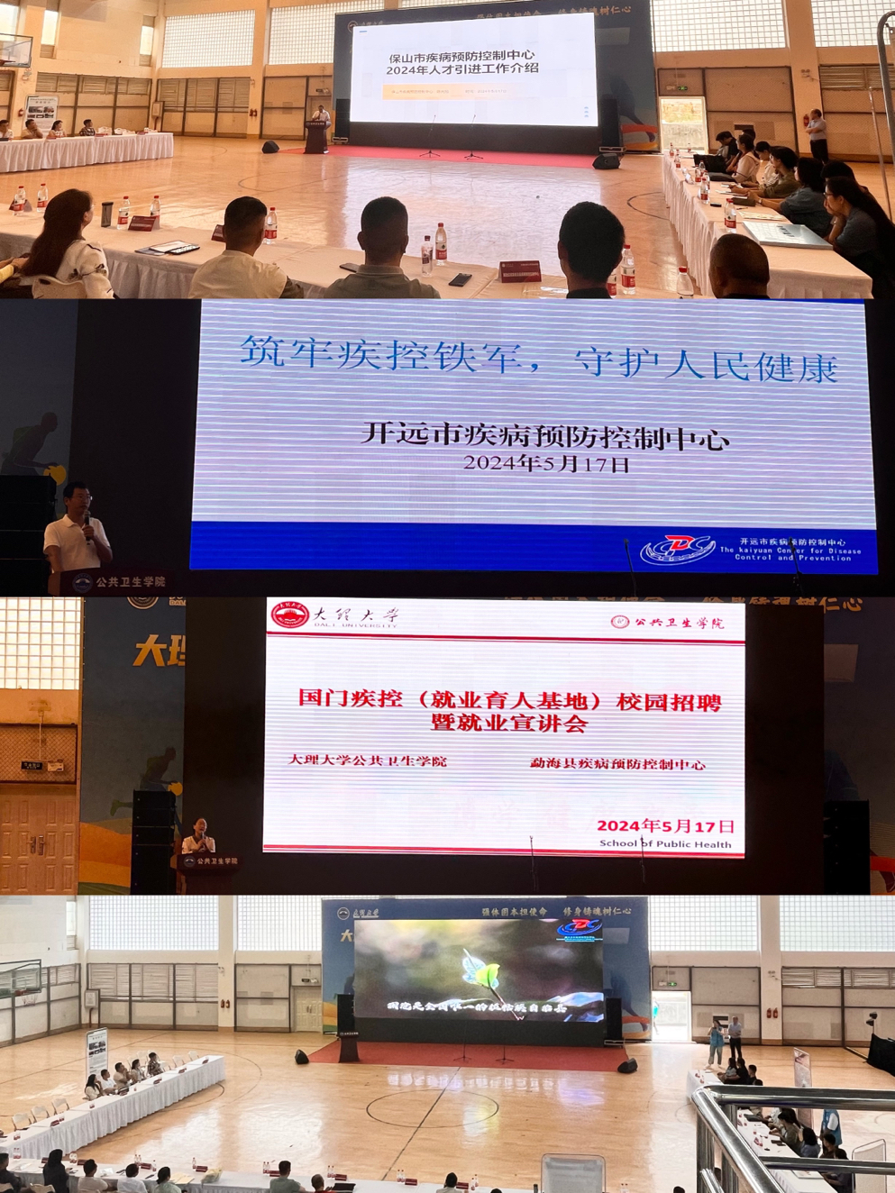 在大理大學(xué)國(guó)門(mén)疾控聯(lián)盟第二屆沿邊公共衛(wèi)生論壇暨實(shí)踐教學(xué)工作會(huì)召開(kāi)之際,5月17日,公共衛(wèi)生學(xué)院邀請(qǐng)24家疾控聯(lián)盟單位及就業(yè)育人單位在下關(guān)校區(qū)開(kāi)展招聘宣講會(huì)。學(xué)生工作處、學(xué)院黨政領(lǐng)導(dǎo)出席活動(dòng),學(xué)院黨委副書(shū)記萬(wàn)順康主持,共計(jì)600余名學(xué)生參加.
