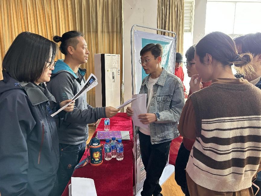 宣講結束后,畢業生遞送個人精心準備的求職資料,并與求職目標單位充分交流,招聘人員耐心解答各類問題,供需交流充分、氣氛融洽。