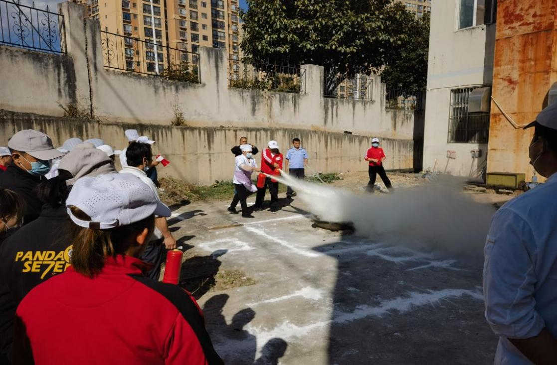 11月9日下午,后勤服務中心飲食服務部在荷花苑餐廳門口組織下關校區食堂從業人員140多人開展2023年消防安全知識培訓及滅火技能實戰演練活動。