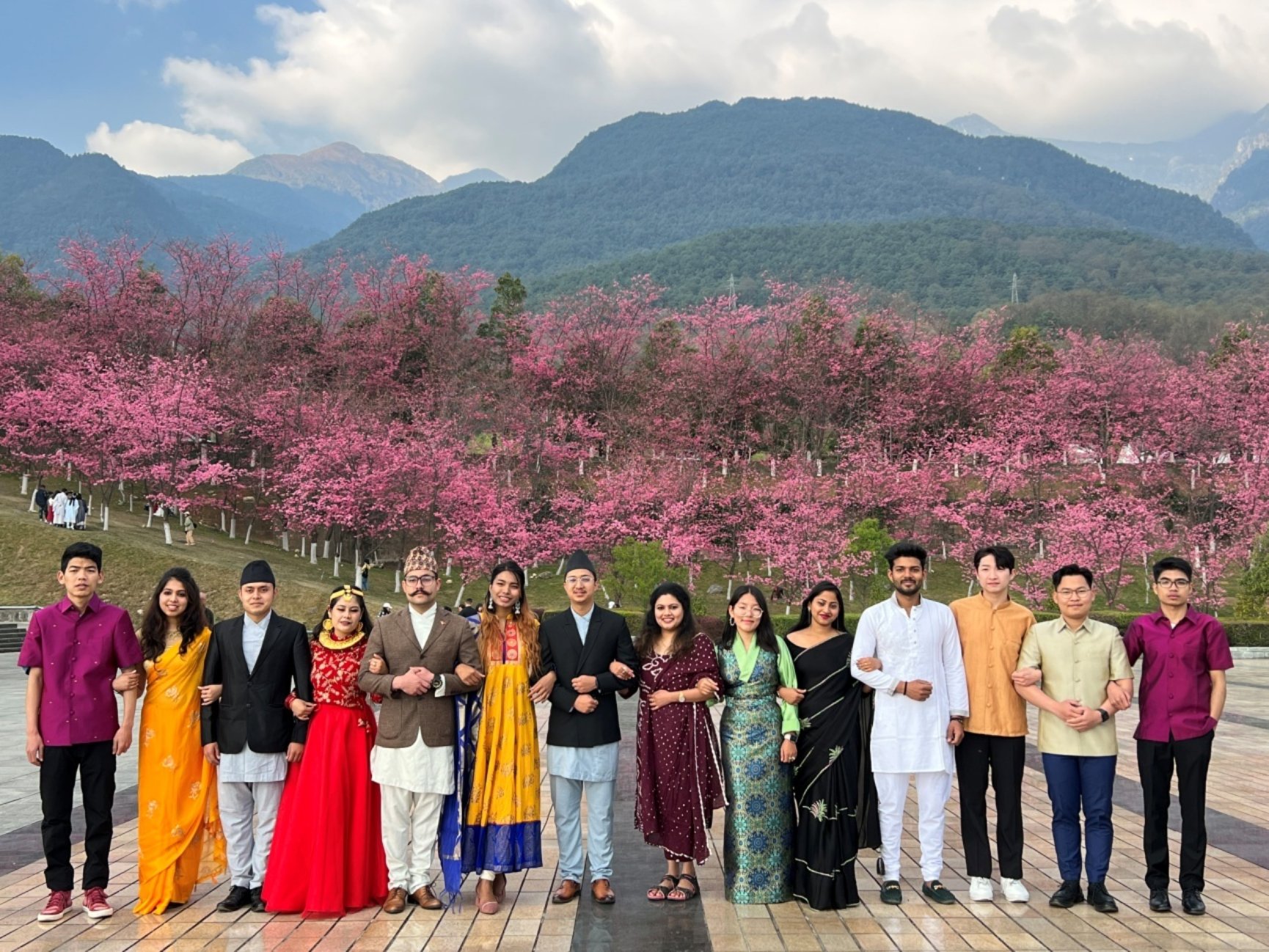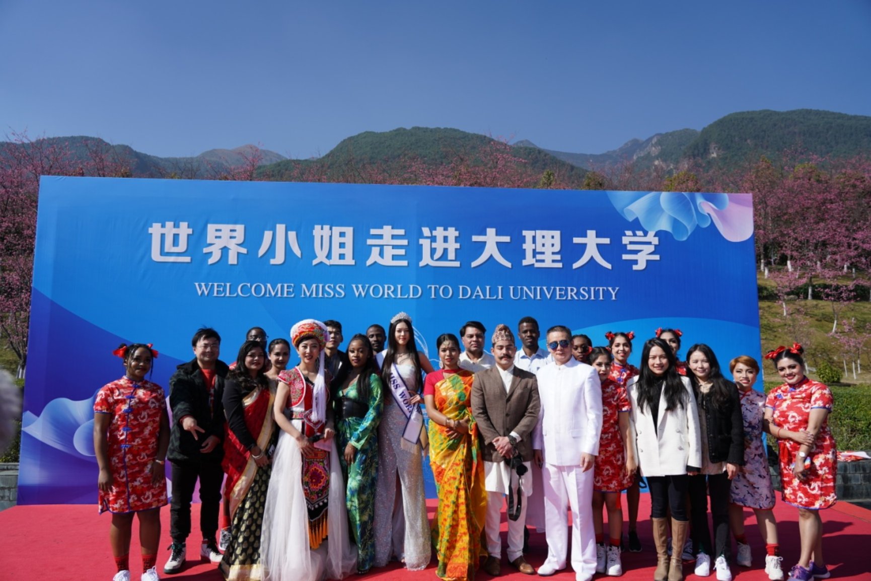 3月2日,參加第72屆世界小姐中國區總決賽新聞發布會的世界小姐們走進大理大學古城校區。春櫻繽紛,世界小姐們與青年學子們交流互動,再次見證蒼山腳下“山水理大”的美麗。活動當天,我校中外學生一道,以說唱表演《中國話》熱烈歡迎世界小姐們的到來,留學生們自信滿滿地說著流利的中國話,贏得了觀眾的陣陣掌聲。緊接著,8名尼泊爾、印度、坦桑尼亞等國家的留學生們身著本國服裝,與精心裝扮的中國學生們一同進行了一場精彩的T臺競秀,世界旅游小姐中國區總冠軍曹燦親切同他們交流互動,并以專業的視角為他們提供指導,這是他們第一次與世界小姐如此近距離交流。