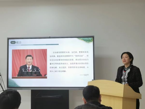 童曉寧從訴源治理的概念、大理地區訴源治理的必要性、大理法院推動訴源治理的正當性、大理法院訴源治理的實踐研究四個方面分享了她對訴源治理的實踐與思考。童曉寧指出,訴源治理是法治建設的題中應有之義,法治的力量很寬厚,應該往前端靠,重在預防,而調解在基層的效果非常好,在多元解紛的背景下,調解能夠在天平的一端傳遞公正的力度,更能在另一端傳遞法律的溫度。