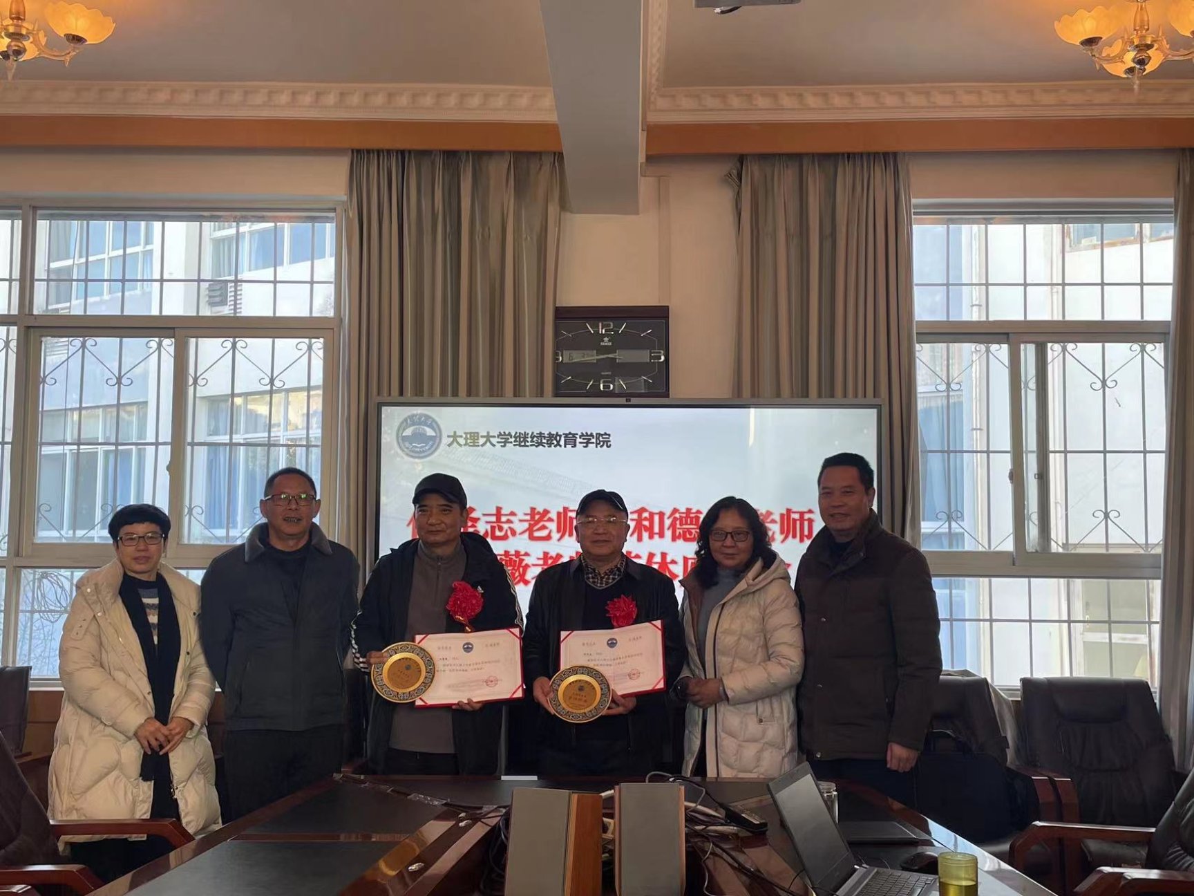 座談會后,學院領導代表校工會向三名退休職工頒發了退休紀念證書。