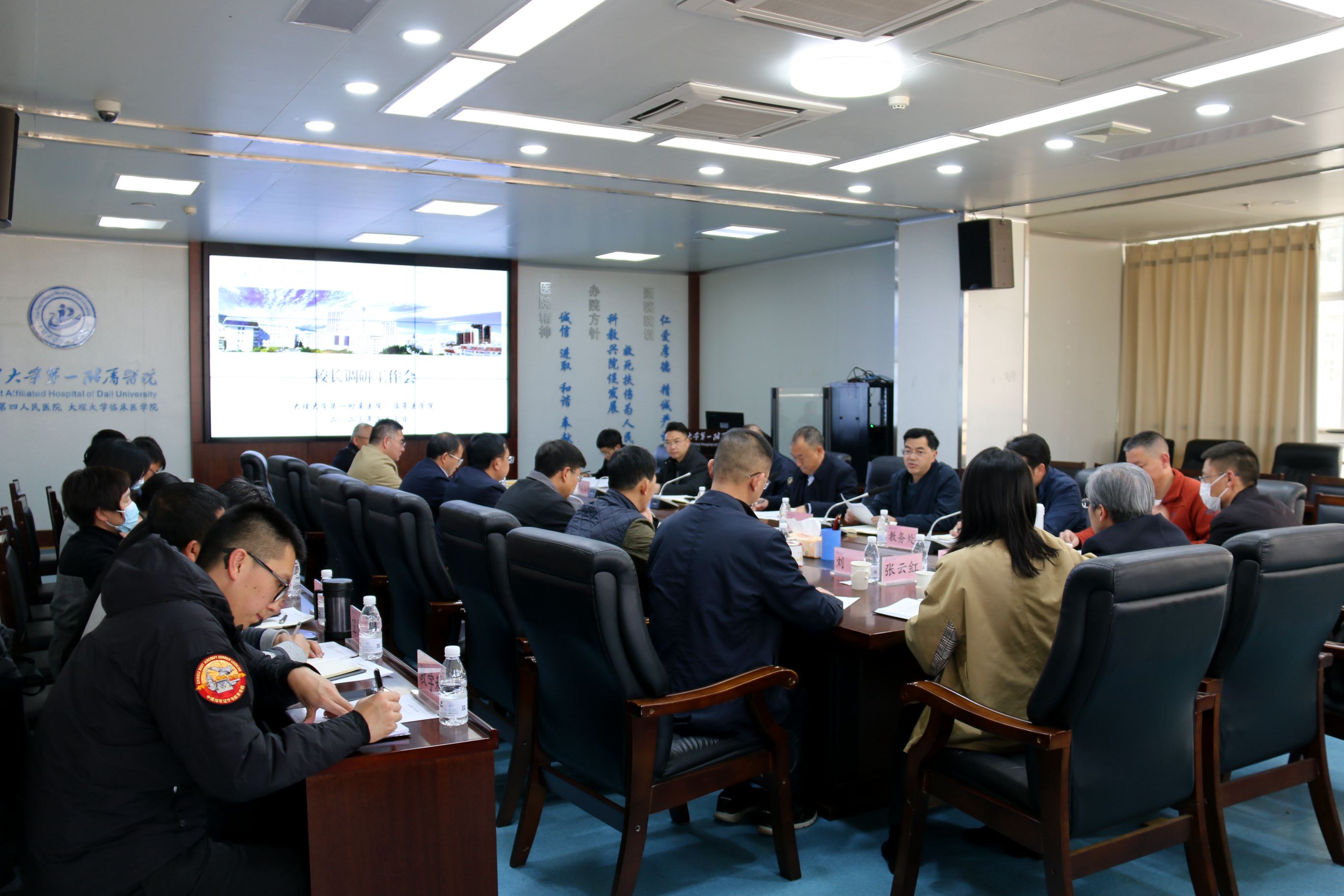 3月3日,學(xué)校黨委副書記、校長楊順清,黨委委員、副校長徐立以及相關(guān)職能部門負責(zé)人一行8人到大理大學(xué)第一附屬醫(yī)院(臨床醫(yī)學(xué)院)調(diào)研。醫(yī)院黨政領(lǐng)導(dǎo)及相關(guān)職能科室負責(zé)人參加調(diào)研座談。