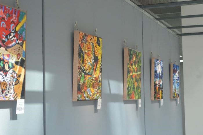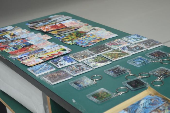 此次展覽作品的主題聚焦于大理本地傳統文化,從大理的人、物、建筑中獲取靈感來源,通過對不同元素的采集、抽象、處理、提煉,再與學生天馬行空的創意相結合,生成了一幅幅形象飽滿、妙趣橫生、充滿視覺沖擊力的作品。除色彩鮮明的丙烯畫以外,巧奪天工的建筑模型也是此次展覽的作品。在已成型畫作的基礎上,學生們還制作了相關的文創產品,如冰箱貼、鑰匙扣等,加深了同學們對于建筑藝術表現的理解,也體現了學生們專業能力的延伸發展。