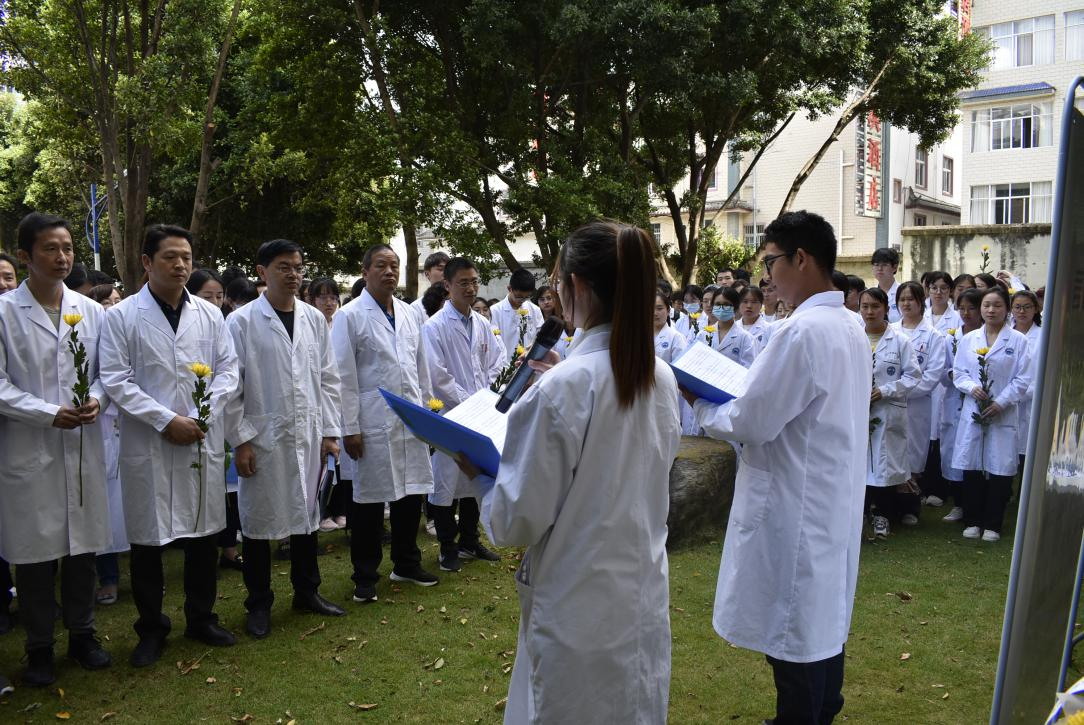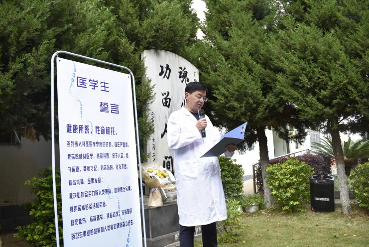 醫學部常務副書記武有聰領誓,重溫《醫學生誓言》。健康所系,性命相托,是新時代每一個醫學生的責任與使命,代代相傳,銘記在心。隨后,現場師生依次走向實驗動物紀念碑默哀鮮花,簽字留言。