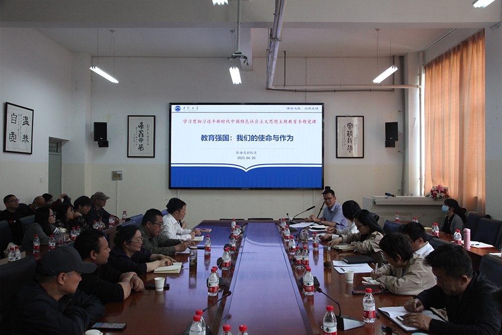 4月20日,副校長張海亮以《教育強國:我們的使命與作為》為題,為農生學院、工程學院、文學院、國際教育學院、教務處、對外合作交流處副處以上干部、黨委委員、支部書記、學生黨員代表上了一堂專題黨課。黨課由農生學院黨委書記馬志敏主持。