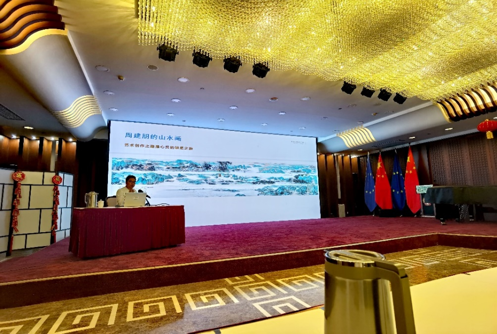 8月23日,周建朋應比利時中國駐歐盟使團邀請,在比利時布魯塞爾開展主題為“各美其美——東西方繪畫之旅與跨文化交流”的藝術交流講座。使團青年理論學習小組參與講座交流,共同探討開展跨文化藝術交流的現實路徑。