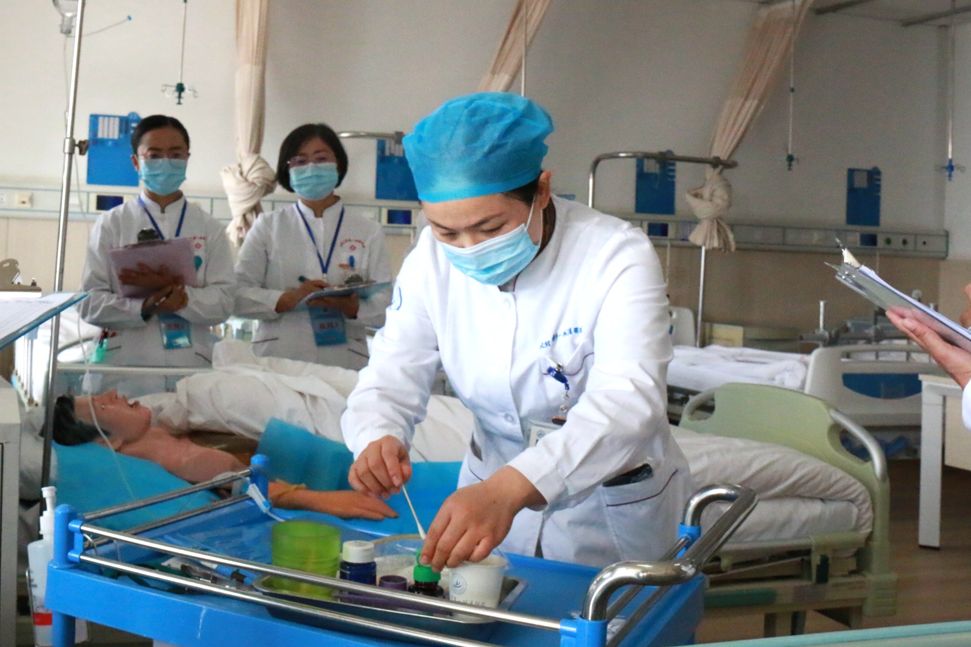 比賽中,參賽人員熱情飽滿、一絲不茍,保持沉著冷靜的心態,將日常工作中專注和熟練的技能充分展現,不僅展現了選手們的個人能力,也讓我們看到了他們的活力與激情,體現出護理工作者良好的精神風貌。評委們嚴格對照評分標準進行細致考核,圍繞操作技能、人文關懷、溝通交流、儀容儀表等諸多方面從操作前準備、操作流程、終末質量三個階段對每位選手作出相應的評分。