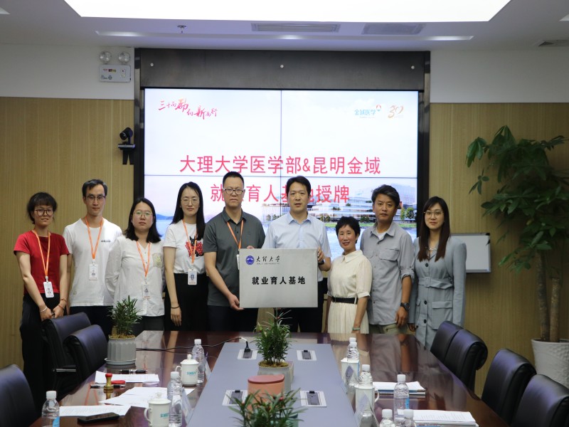 4月28日,醫學部常務副主任胡吉富帶隊走訪了昆明金域醫學檢驗所。醫學部一行與公司相關部門負責人進行了座談,舉行了“大理大學就業育人基地”簽約和掛牌儀式、參觀了公司實驗室。