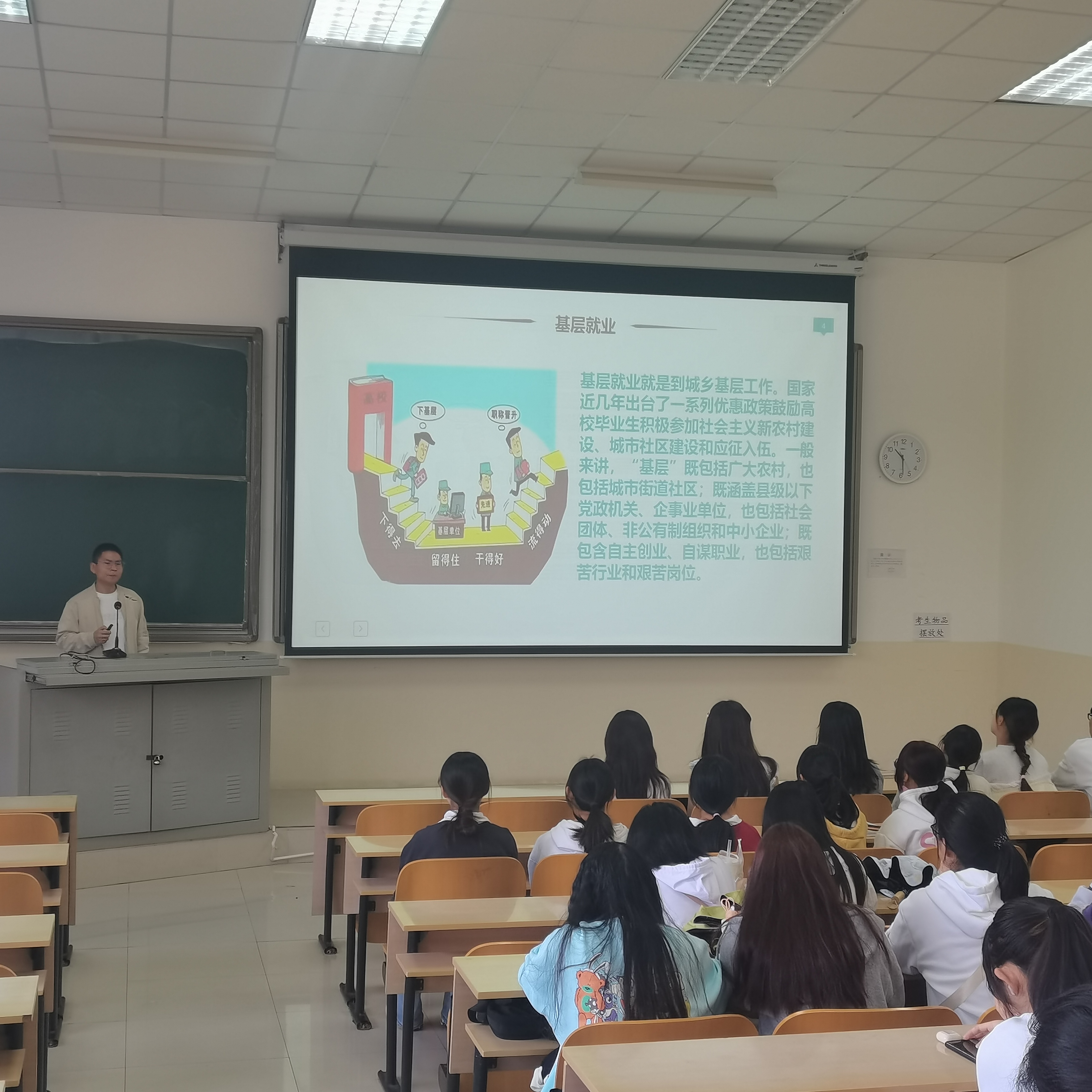 本次講座重點向同學(xué)們介紹了“三支一扶”“西部計劃”及“特崗教師”等基層就業(yè)項目。鼓勵廣大青年響應(yīng)國家號召到基層去,到人民最需要的地方去建功立業(yè),用信仰堅守,用青春奉獻,為實現(xiàn)“兩個一百年”奮斗目標、實現(xiàn)中華民族偉大復(fù)興的中國夢貢獻青春力量。