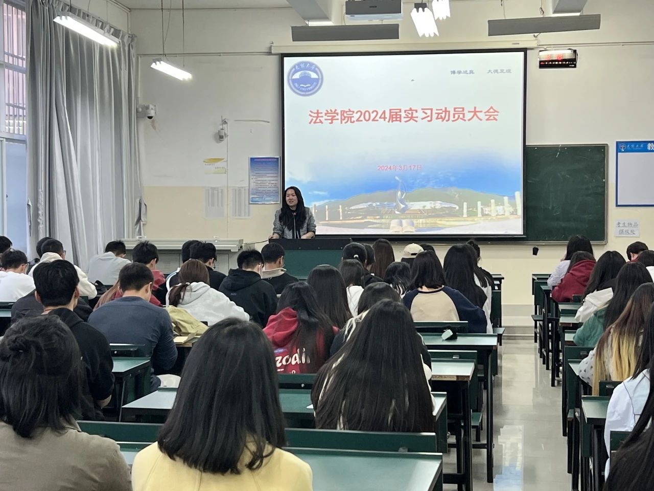 為了進一步強化2024屆畢業實習管理,確保實習工作平穩有序進行,3月17日,法學院召開了2024屆實習動員大會。本次會議由2020級班主任何瑜主持,學院分管領導、部分教師以及2020級全體師生參加。