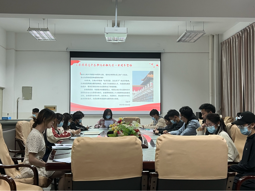 5月20日,工程學院團委組織召開習近平總書記致云南大學建校100周年賀信精神座談會。學院學生會指導老師王安安、團支部書記和學生會主要學生干部參加。