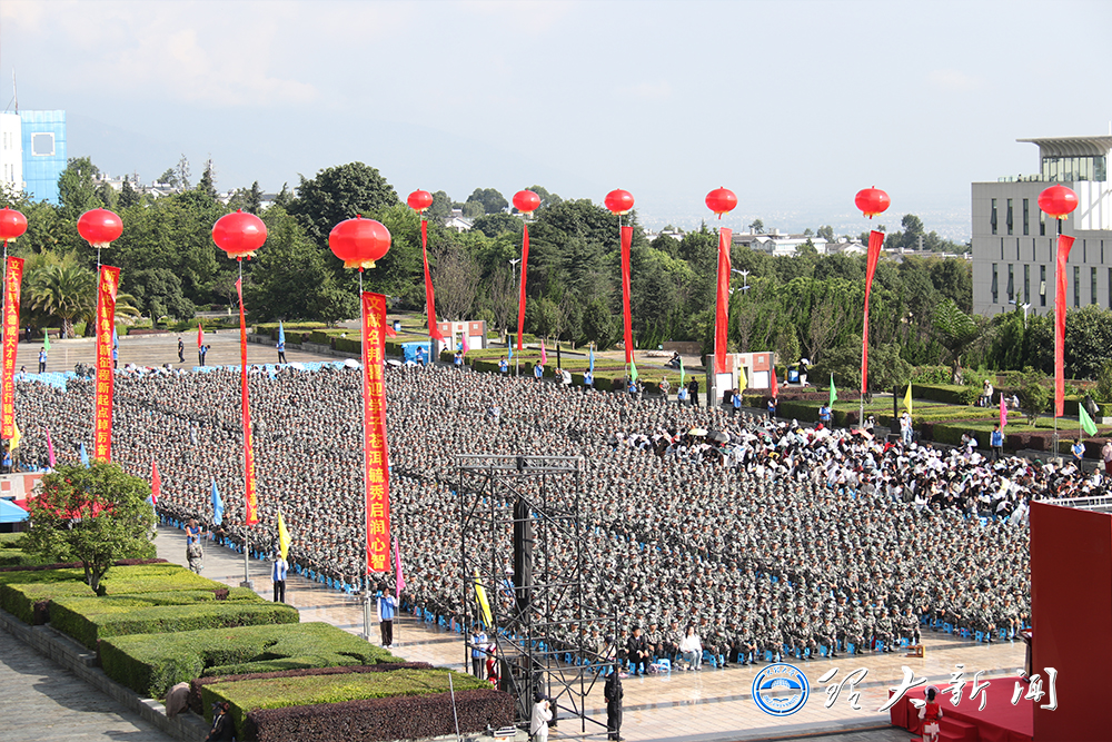 文獻名邦喜迎學子蒼洱毓秀啟潤心智,培根鑄魂樂育新人同心向黨共譜新篇。9月9日上午的理大校園,天高云淡,丹桂飄香。2023級4550名本科生和1196名研究生齊聚古城校區文化廣場,共同參加新生開學典禮暨軍訓動員大會。