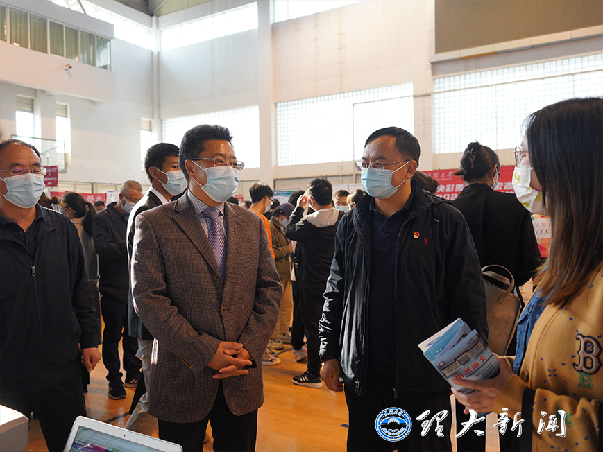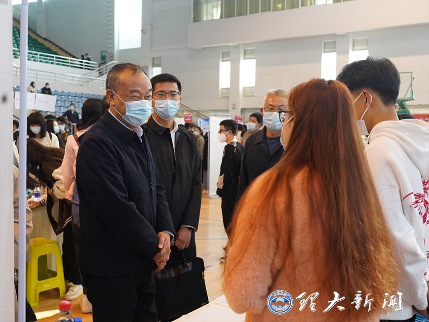招聘會現場,學校黨委書記李濤,黨委副書記、校長楊順清,副校長穆智向到場求職的同學詢問就業意愿,與他們聊就業形勢并引導同學們要樹立良好的就業心態,堅定信心,不斷物色適合自身發展的崗位。