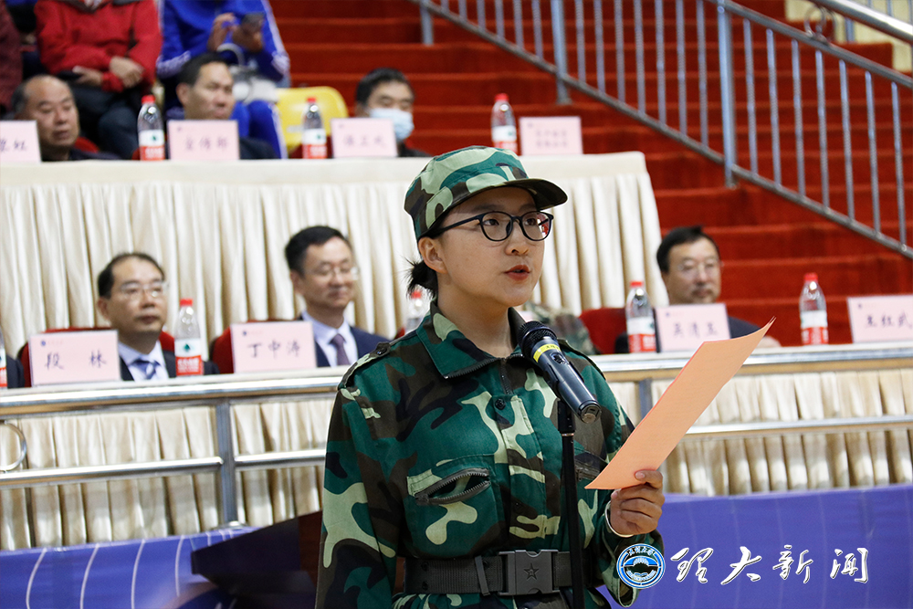 2021級參訓新生代表、經濟與管理學院楊麗敏同學發言時表示,軍訓是一個鍛煉意志、戰勝自我的良機,也是一段難忘的人生體驗。軍訓的結束預示著我們在理大的學習生活正式拉開序幕,在接下來的學習生活中,一定把軍訓的成果轉化為學習的動力,把軍訓期間養成的良好品德和作風帶到學習、工作和生活中,以大學生行為準則規范自己的言行,秉承“博學達真、大德至理”的校訓和“至誠尚行、求實創新”的校風,堅定信念,刻苦學習,努力拼搏,做一粒自律而豐盈的種子,不負青春,不負韶華,不負時代,用愛譜寫拼搏奮進的青春華章。