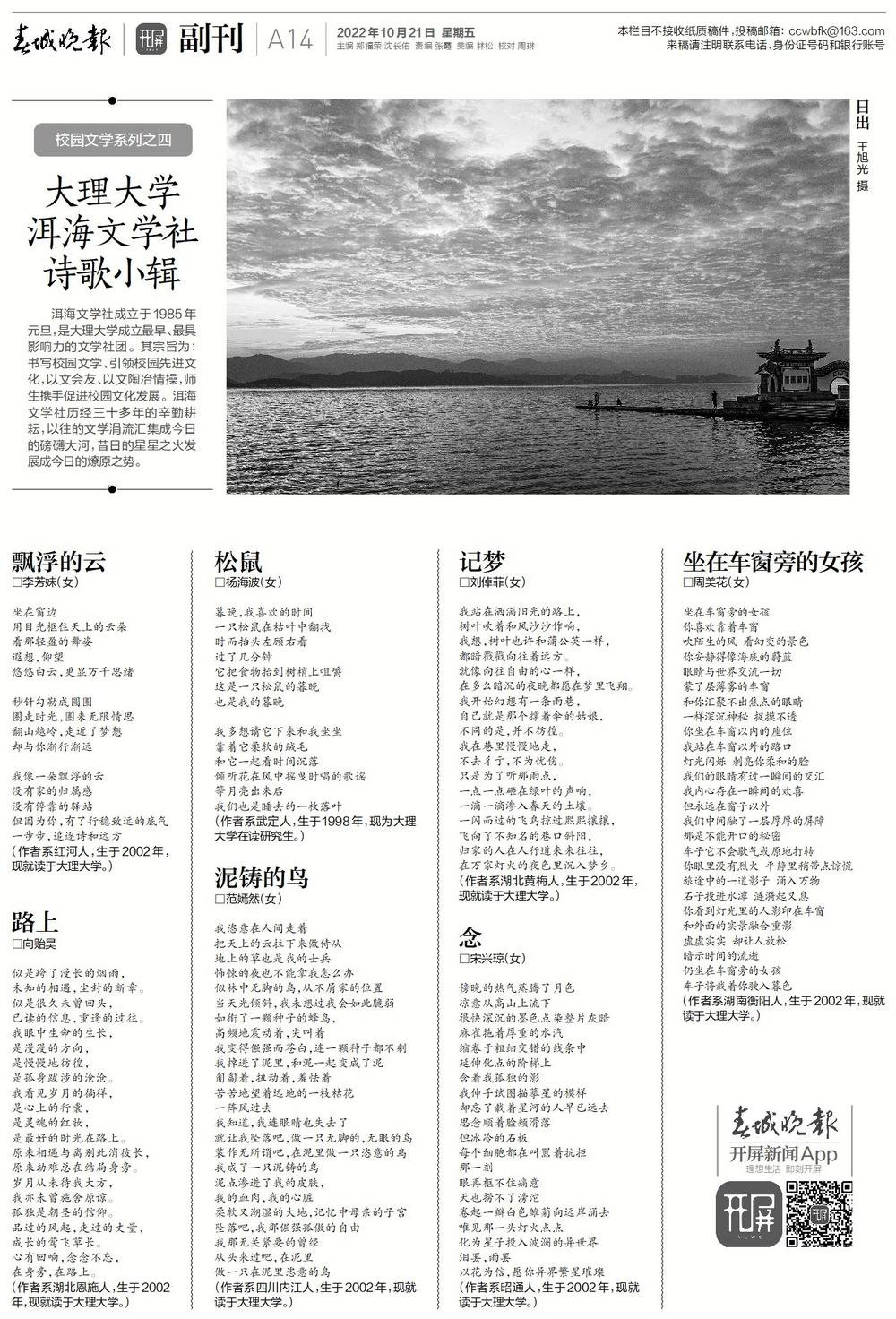 《春城晚報(bào)》專版推出《大理大學(xué)洱海文學(xué)社詩歌小輯》