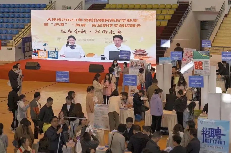 11月2日,由大理州人力資源和社會保障局與大理大學共同舉辦的大理州2023年金秋招聘月高校畢業生暨“滬滇”“閩滇”校企協作專場招聘會在大理大學古城校區舉行。本次招聘會采取現場招聘和直播推薦崗位兩種方式。文學院李玉、吳霞、徐世家、譚翕4名同學擔任“直播帶崗”的主播,為大家在線推薦就業崗位。