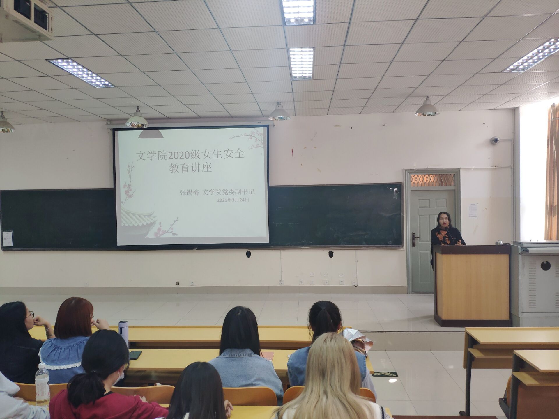 3月24日,文學(xué)院于三教附樓開展了“關(guān)愛女生成長”主題教育講座。文學(xué)院黨委副書記張錫梅擔(dān)任主講,文學(xué)院2020級全體240余名女生聆聽了本次講座。
