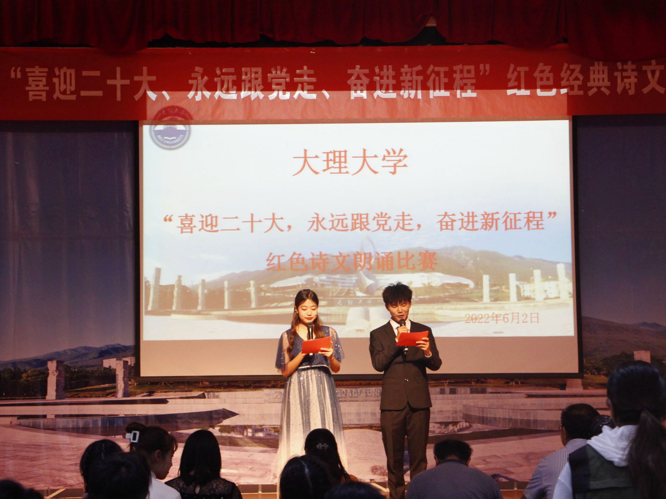 6月2日,由大理大學第十七屆校園文化節組委會主辦、文學院承辦的大理大學“喜迎二十大、永遠跟黨走、奮進新征程”紅色經典詩文朗誦比賽順利結束。