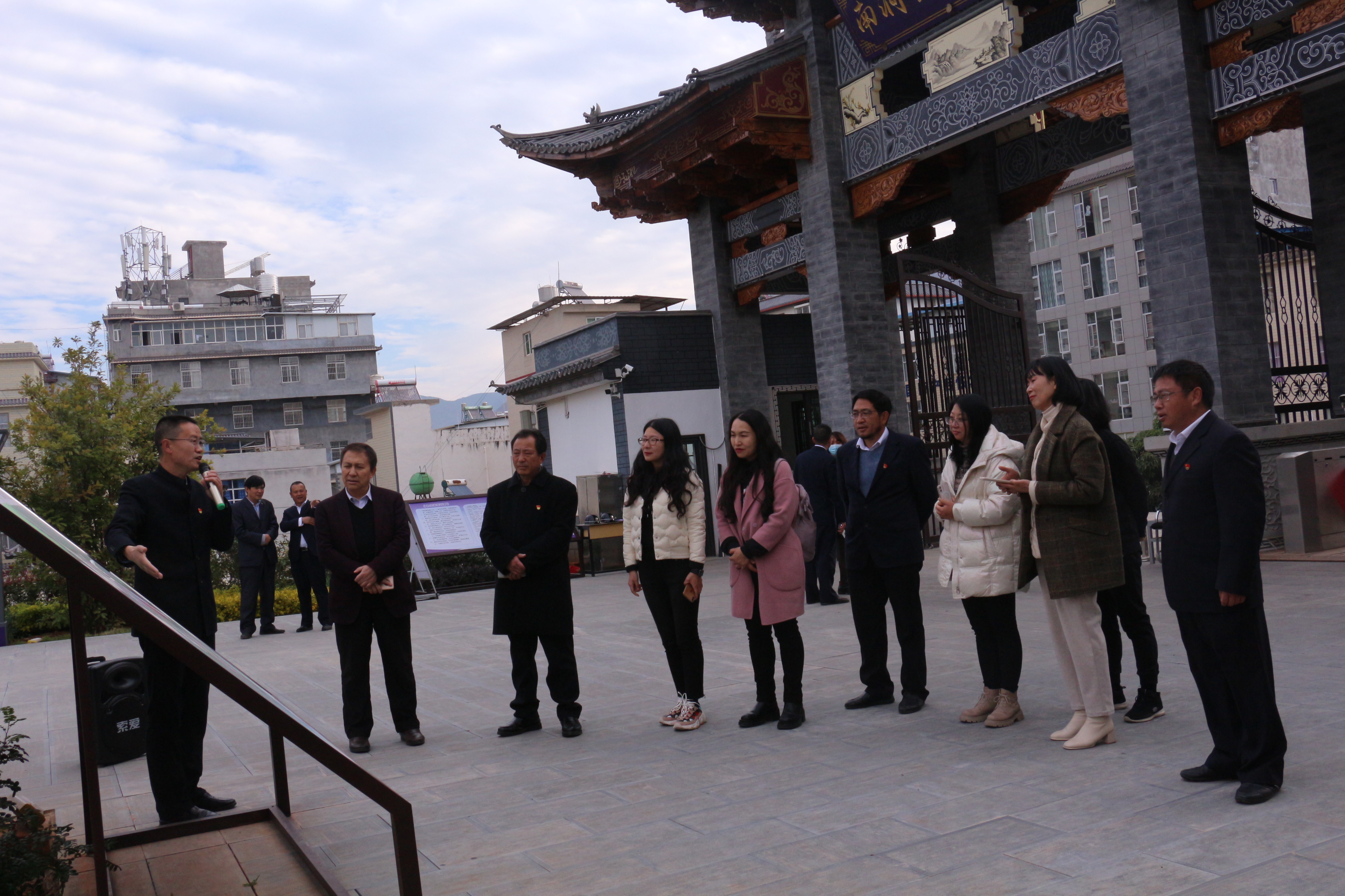 納張元介紹了大理大學和文學院的基本情況。同時簡述了文學院的教育理念,他說,文學院始終堅持“化知為能”的實踐教學體系,以學生能力提升為目標,把提升學生能力落到實處。多年來,一直實施“300+工程”,提升學生閱讀、寫作、分析問題的能力,同時給學生提供多種平臺實踐訓練。這幾年,南澗一中發展很快,捷報頻傳,取得的成績全社會有目共睹。我們建立南澗一中教學實踐基地,目的就是為學生的教學實踐拓展又一個高質量的實訓平臺。