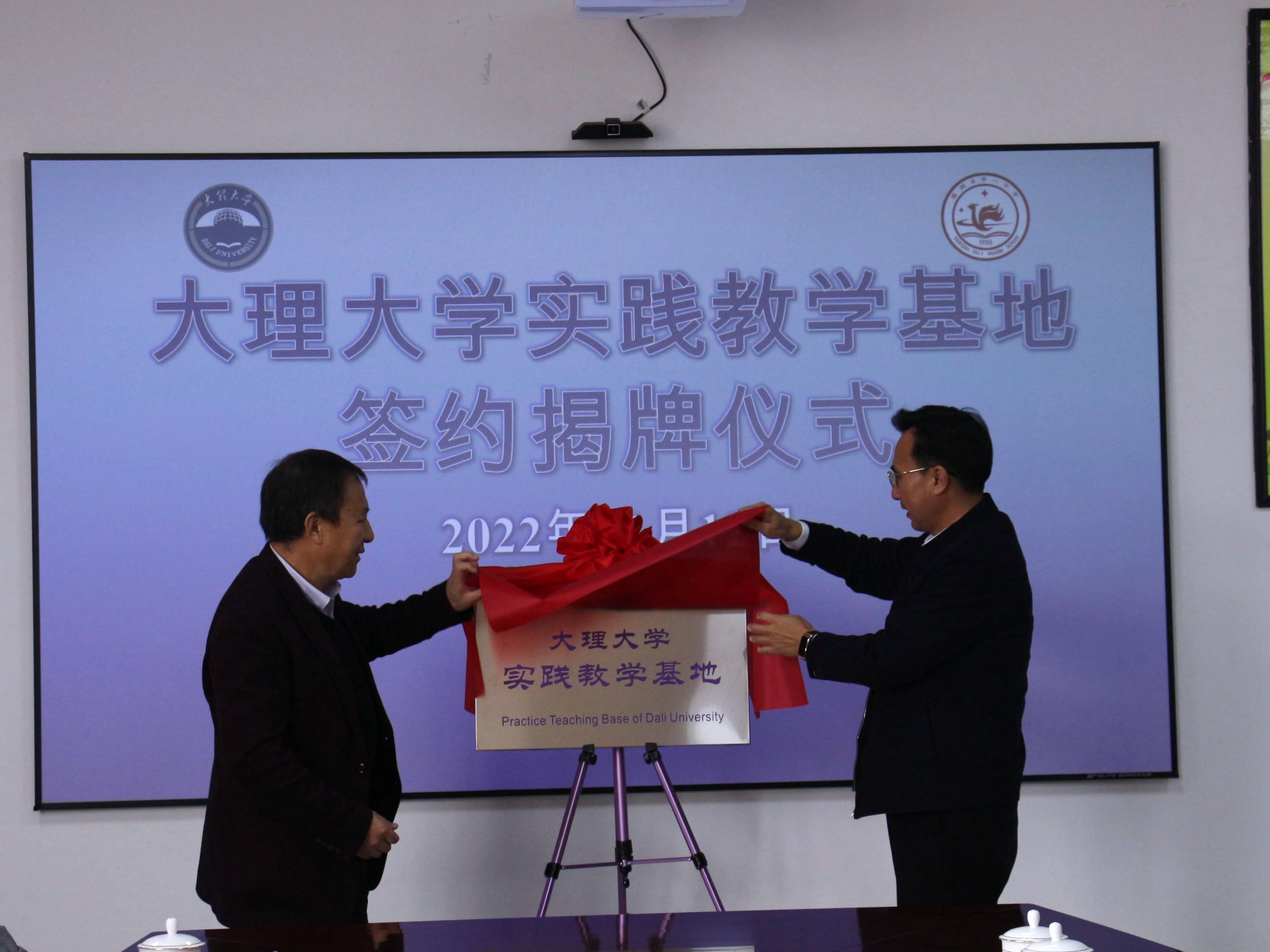 1月12日,南澗縣第一中學舉行大理大學教學實踐基地簽約揭牌儀式。中共南澗縣委書記王紹基、文學院黨政領導、南澗彝族自治縣教育體育局、南澗縣第一中學主要領導和教師代表及我校文學院黨政領導參加了揭牌儀式。南澗縣委書記王紹基和文學院院長納張元共同為教學實踐基地揭牌。揭牌儀式由南澗彝族自治縣教育體育黨工委書記、局長查秀賓主持。