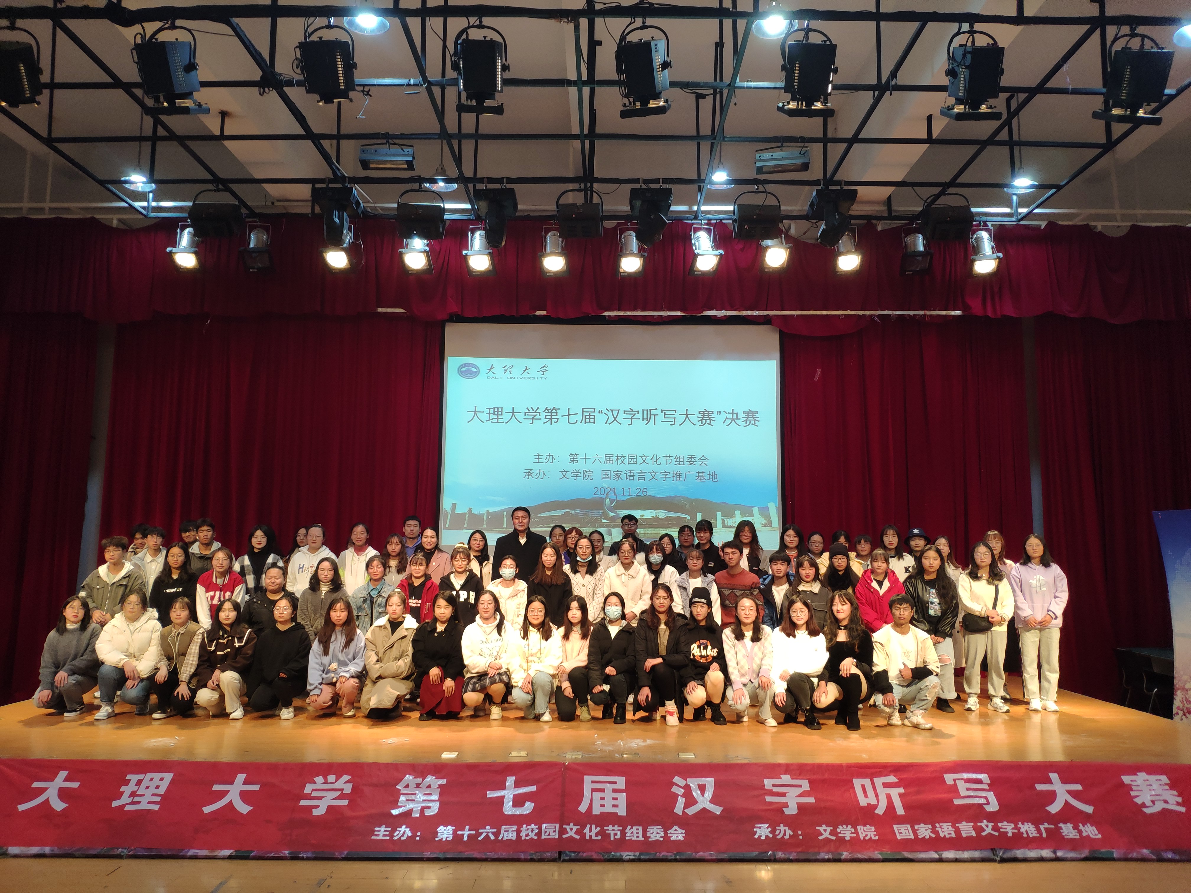 11月26日,以“學(xué)好用好國家通用語言文字,書寫新時(shí)代青年的使命與擔(dān)當(dāng)”為主題的大理大學(xué)第七屆漢字聽寫大賽順利結(jié)束。本次比賽由大理大學(xué)第十六屆校園文化節(jié)組委會(huì)主辦,文學(xué)院和國家語言文字推廣基地(大理大學(xué))承辦。共有來自15個(gè)學(xué)院的代表隊(duì)75名同學(xué)參加比賽。