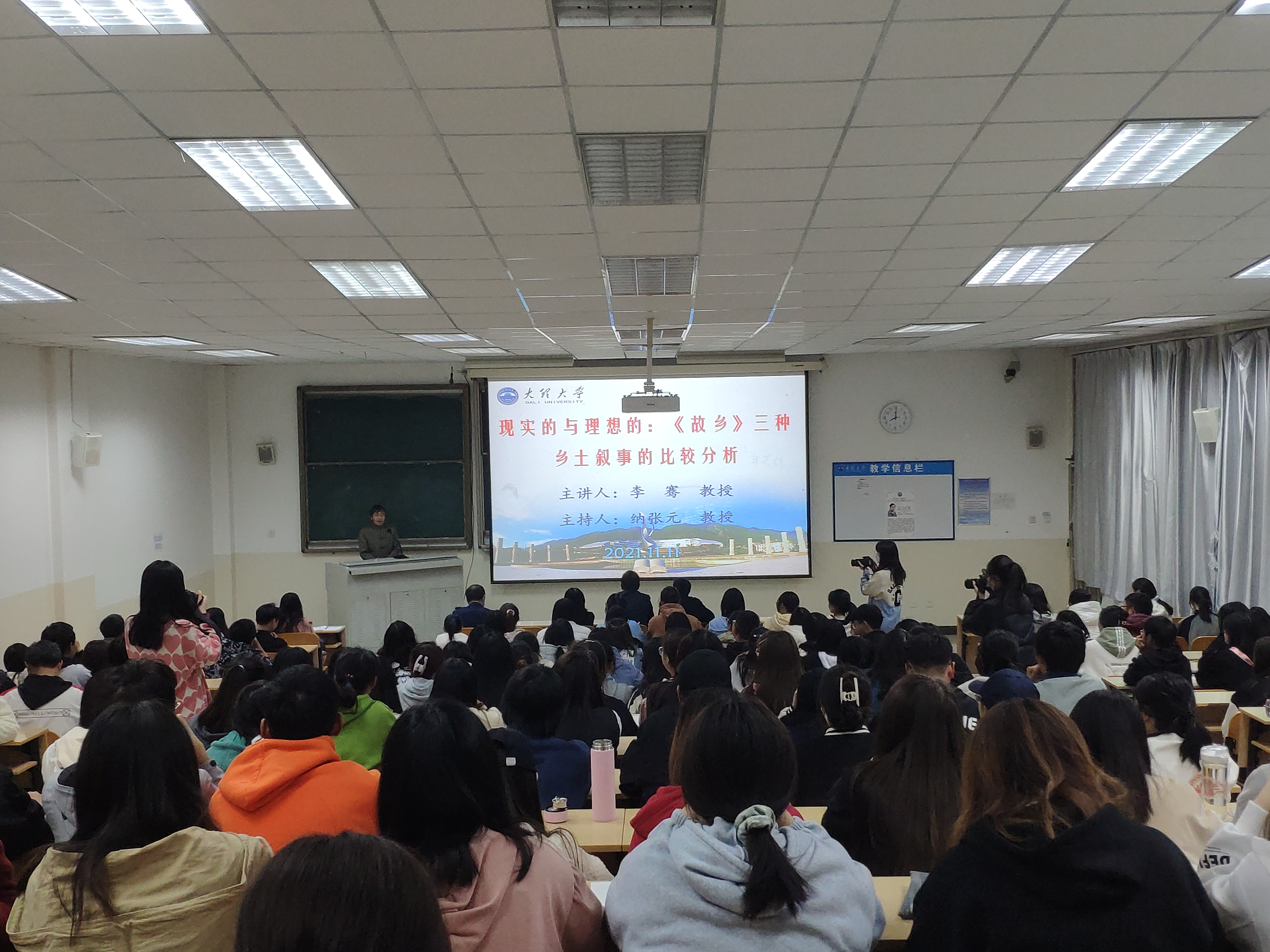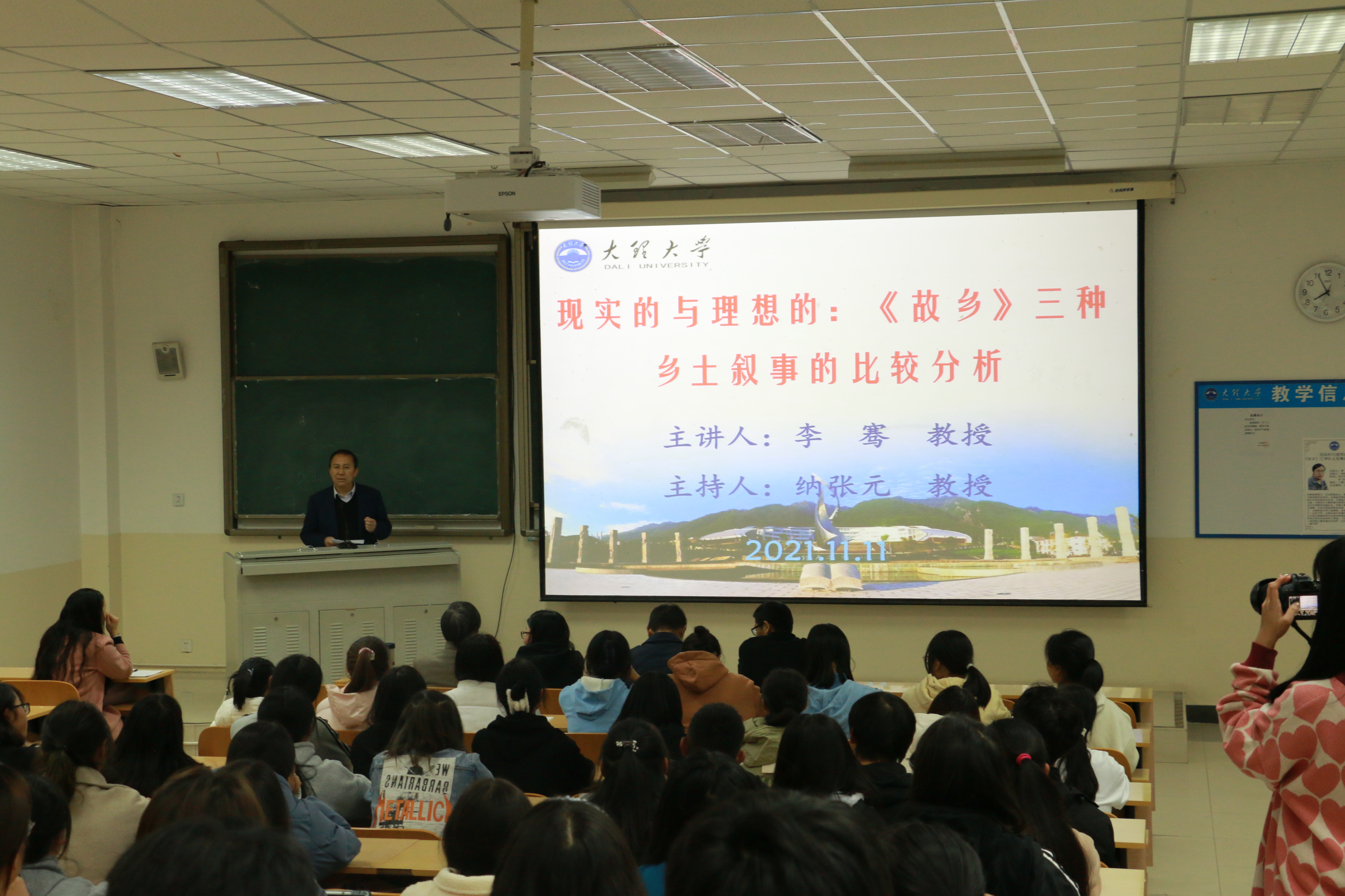 11月11日,文學院有幸邀請到了云南民族大學李騫教授為文學院師生帶來一場題為“現實的與理想的:《故鄉》三種鄉土敘事的比較分析”的學術講座,文學院院長納張元,副院長于昊燕、張錫梅,大理州作家協會副主席北雁、副主席兼秘書長李達偉出席講座,文學院190余名文學愛好者到場聆聽。講座由納張元教授主持。