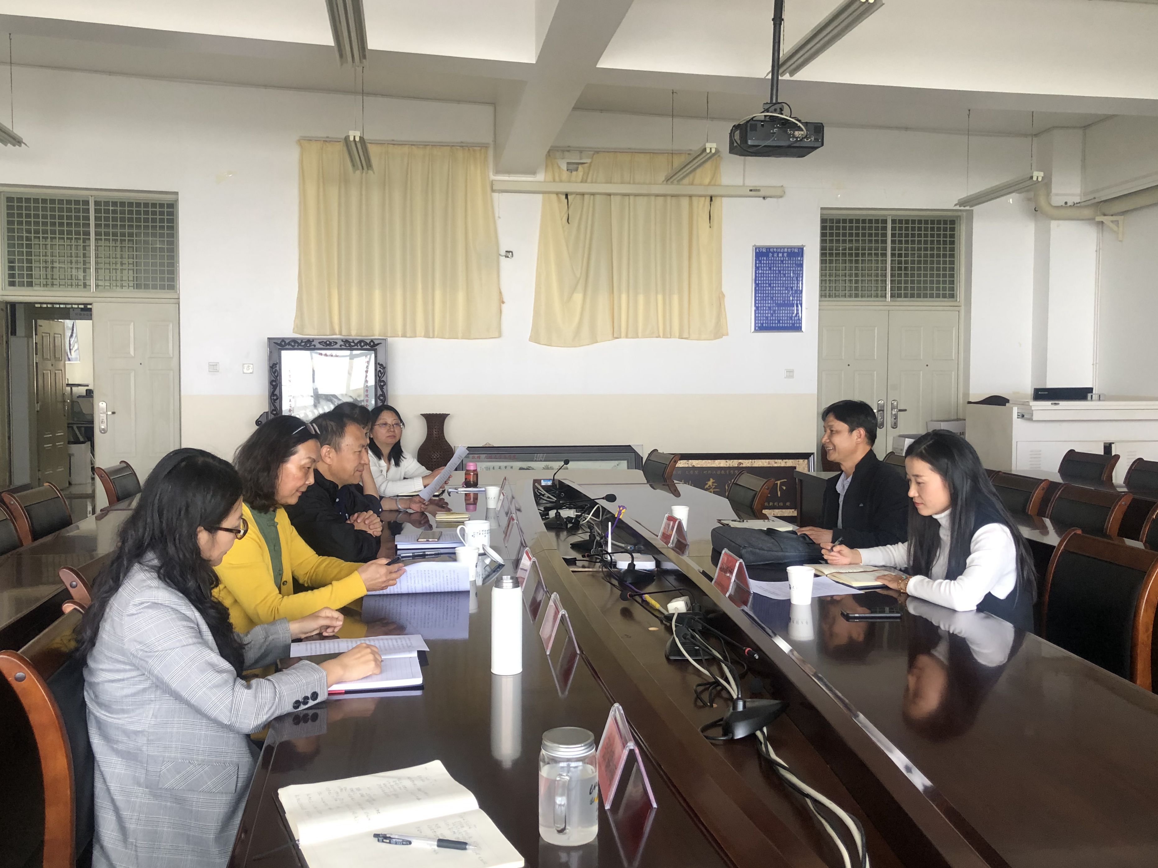 文學院院長納張元,國際教育學院院長張如梅、黨委書記茅維;文學院黨委副書記胡曉燕、文學院副院長于昊燕、張錫梅參加了調研座談會。