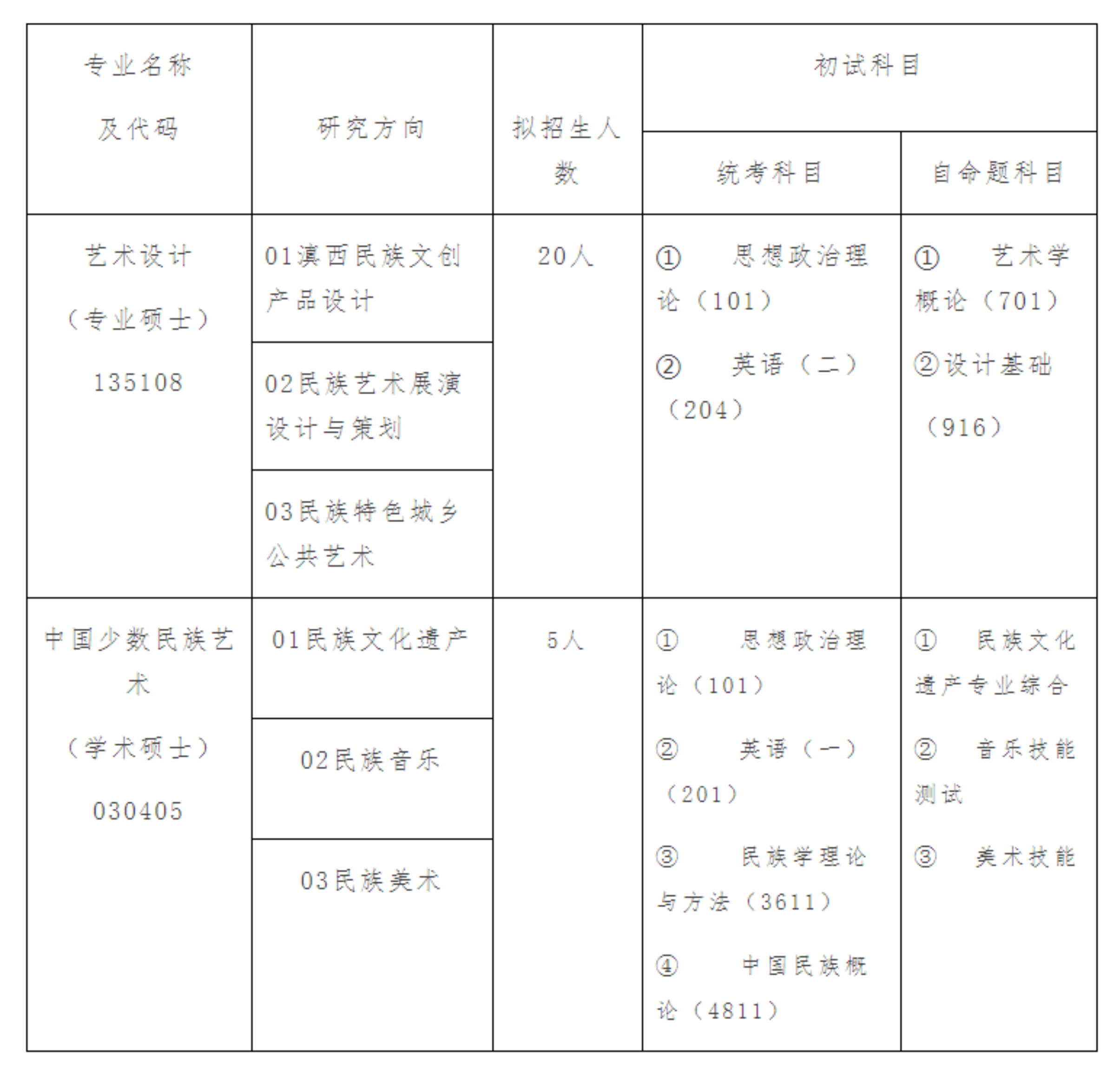 2、民族藝術(shù)展演設(shè)計(jì)與策劃方向,招收藝術(shù)設(shè)計(jì)、美術(shù)學(xué)、藝術(shù)管理、舞臺(tái)設(shè)計(jì)等本科專業(yè)畢業(yè)生。