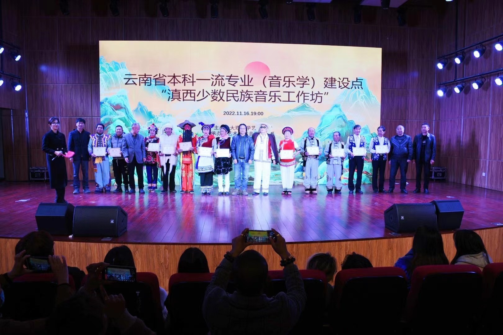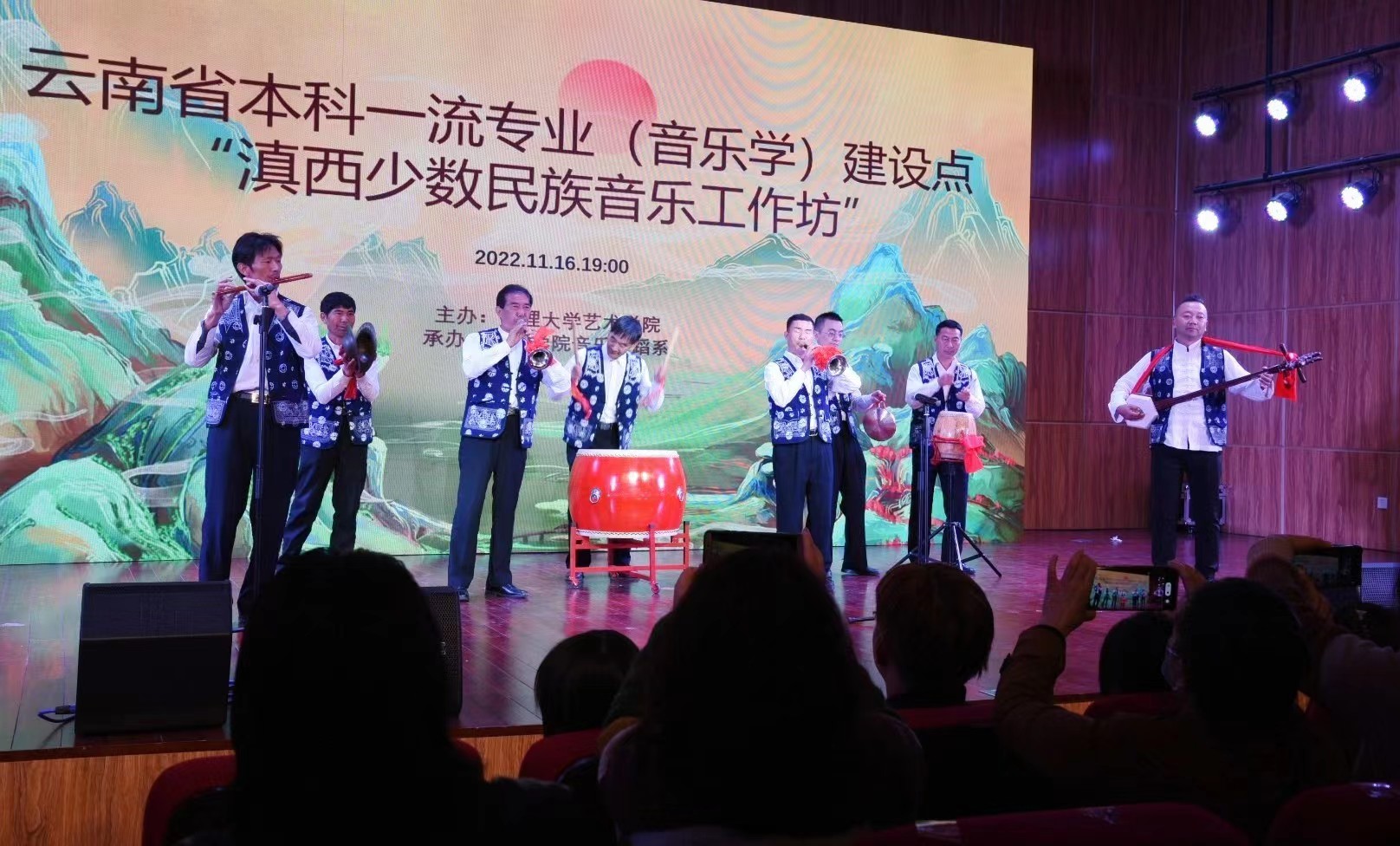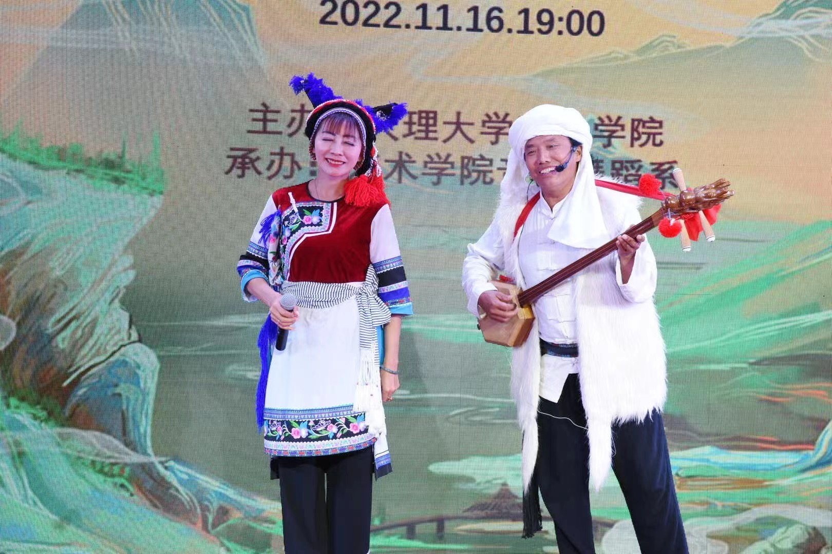 大理大學(xué)相關(guān)部門領(lǐng)導(dǎo),藝術(shù)學(xué)院師生,以及來自大理州內(nèi)9個(gè)民間藝術(shù)傳承人團(tuán)隊(duì)參加了晚會。