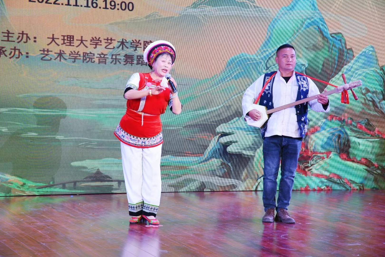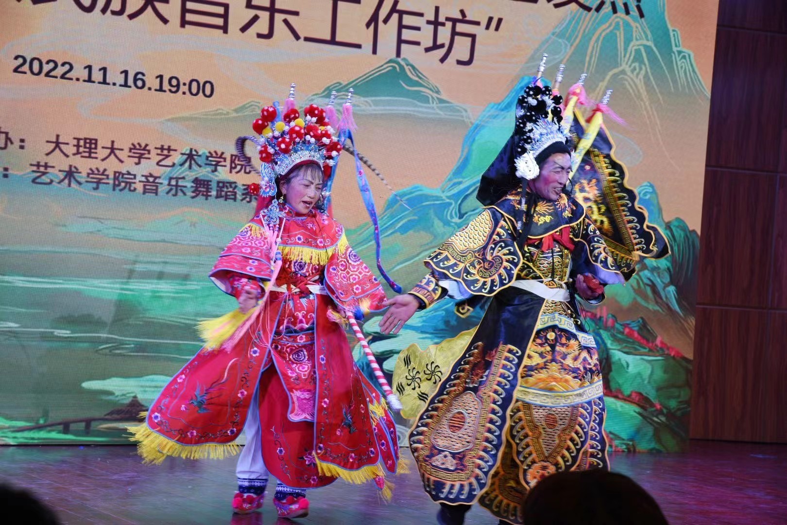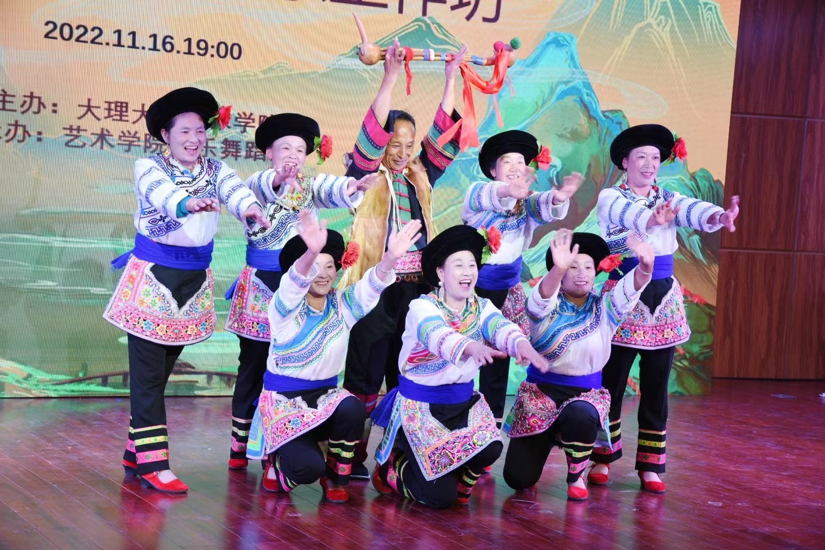 大理大學(xué)相關(guān)部門領(lǐng)導(dǎo),藝術(shù)學(xué)院師生,以及來自大理州內(nèi)9個(gè)民間藝術(shù)傳承人團(tuán)隊(duì)參加了晚會。