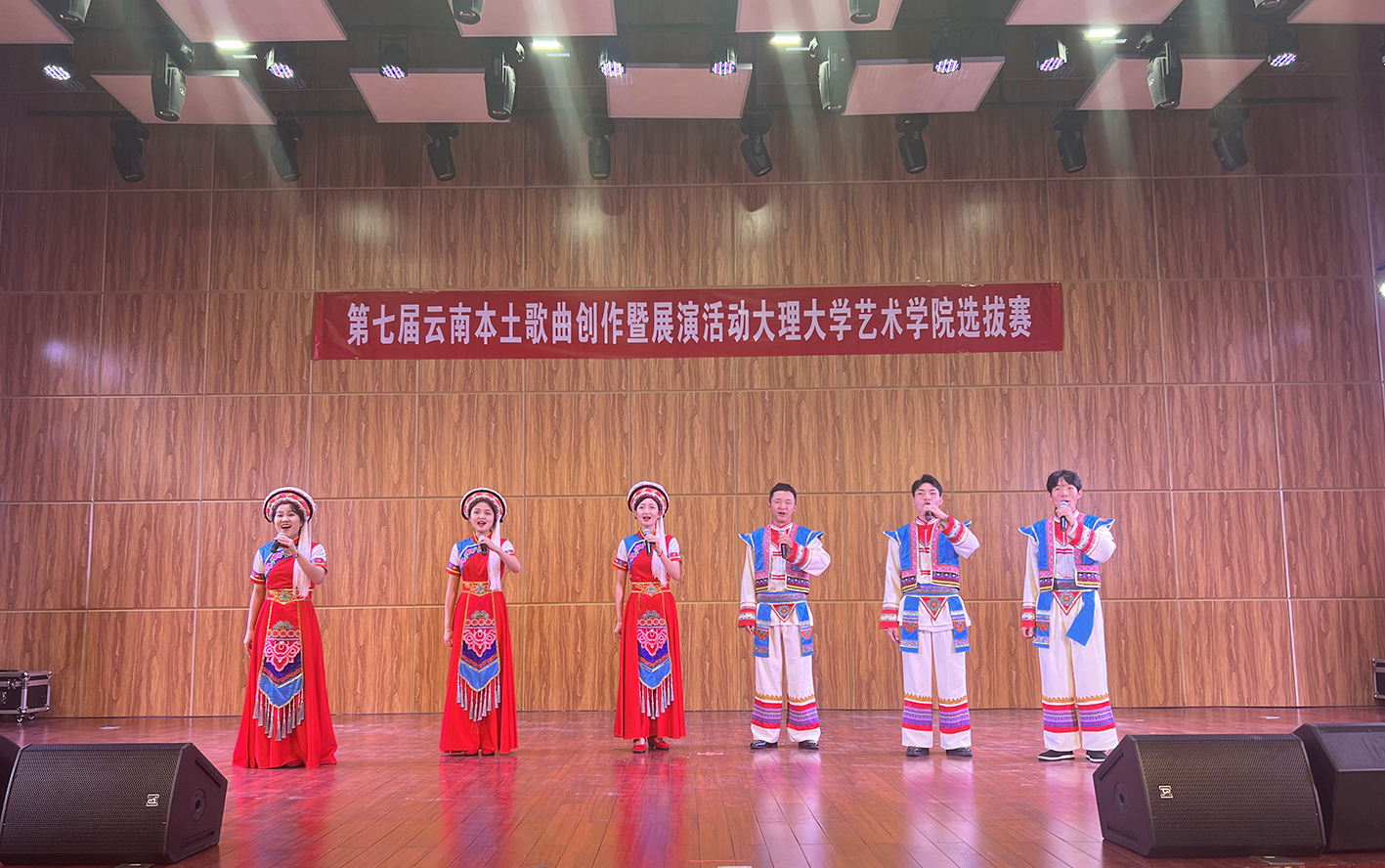 經過“第七屆云南本土歌曲創作暨展演活動大理大學選拔賽”組委會近一個月的籌備,2022年10月13日下午,伴隨著美聲唱法《月光戀》優美的旋律,“第七屆云南本土歌曲創作暨展演活動大理大學選拔賽”正式開賽。本次比賽共有20名選手同臺競技,多首由藝術學院教師創作的本土歌曲被選手們選唱。比賽中,選手們傾情演繹,一首首特色濃郁、悅耳動聽的歌曲宛如一幅幅山水畫緩緩鋪呈在大家面前,贏得了評為和觀眾熱烈的掌聲。