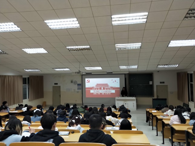 余義平從“黨的二十大會(huì)議基本情況”、“黨的二十大會(huì)議主題和重大意義”和“黨的二十大報(bào)告全文學(xué)習(xí)”三個(gè)方面展開宣講,向大家介紹了黨的二十大的開展情況,呼吁青年人應(yīng)跟著黨走,努力奮斗,在偉大的時(shí)代里不負(fù)韶華。