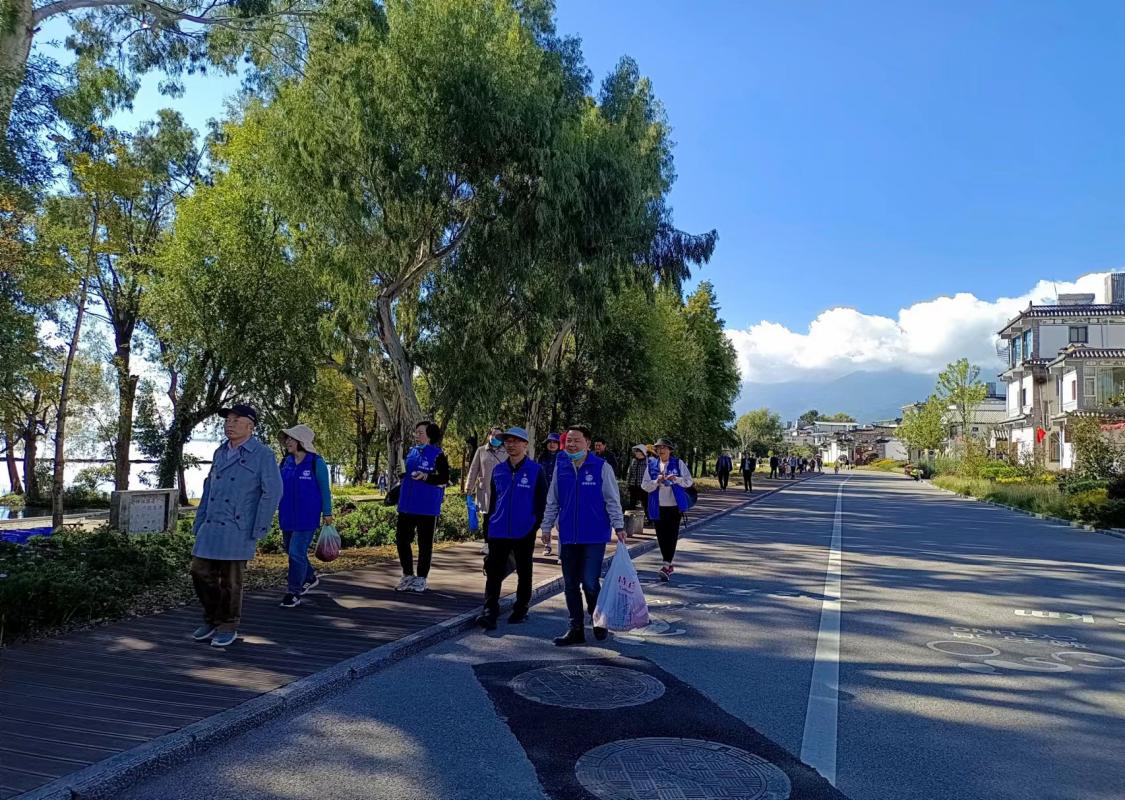 團隊前往古生村陳列館、古生村黨支部先鋒模范基地參觀,了解當地建設民族團結示范區工作,學習習近平總書記的重要指示精神。團隊乘車前往才村碼頭,徒步洱海生態廊道,邊徒步邊撿垃圾,開展“保護洱海愛護洱海環境,加強體育鍛煉增強體質”活動,磻溪渡口徒步。