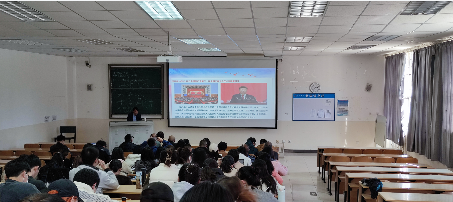 11月21日,馬克思主義學院在古城校區舉行黨的二十大精神專題黨課學習。專題黨課由趙金元教授主講,學院黨委書記楊玉春主持,全體教師和學生黨員參加學習。