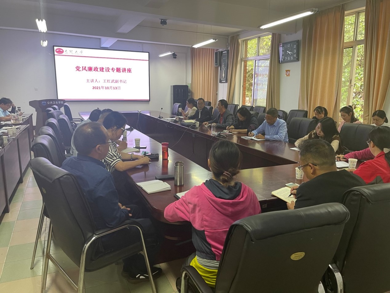 10月13日,學校黨委副書記王紅武為護理學院、公共衛生學院開展黨風廉政建設專題講座。專題講座由公共衛生學院黨委李慧書記主持,護理學院和公共衛生學院全體教師黨員參加。